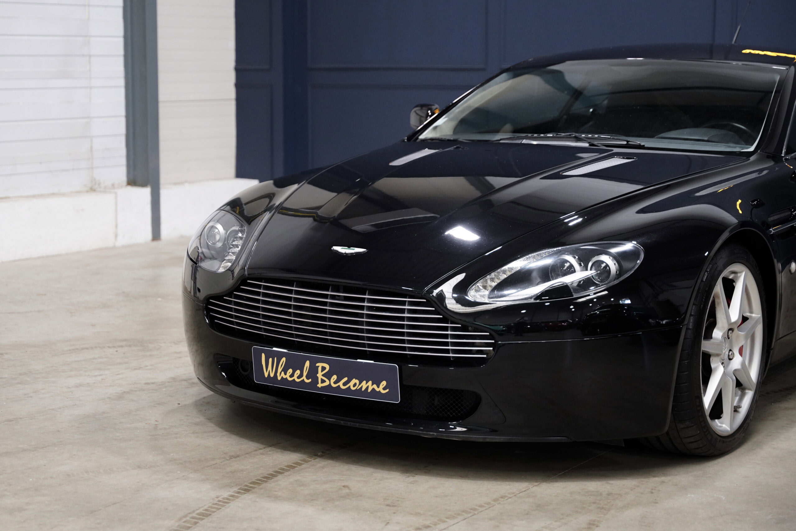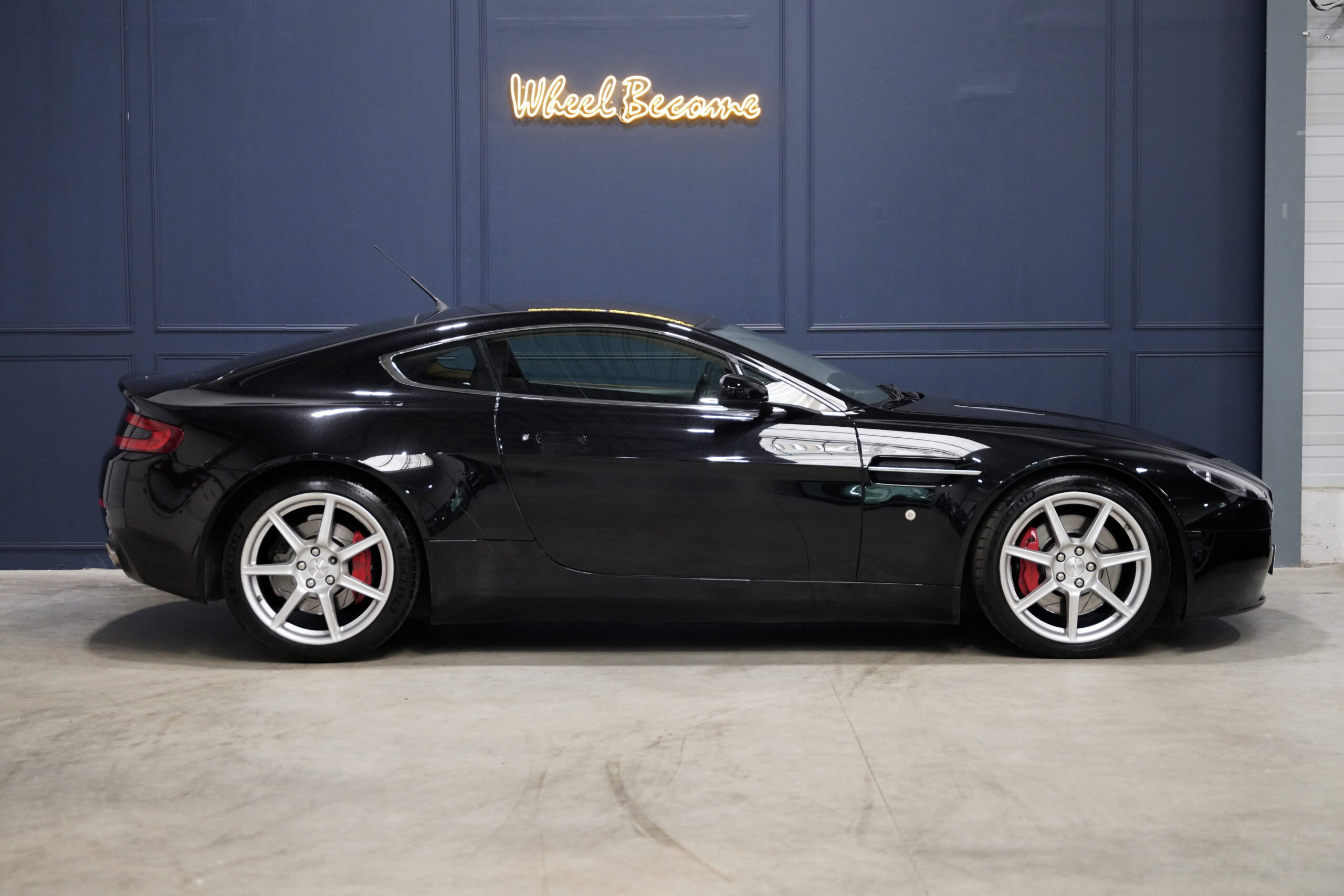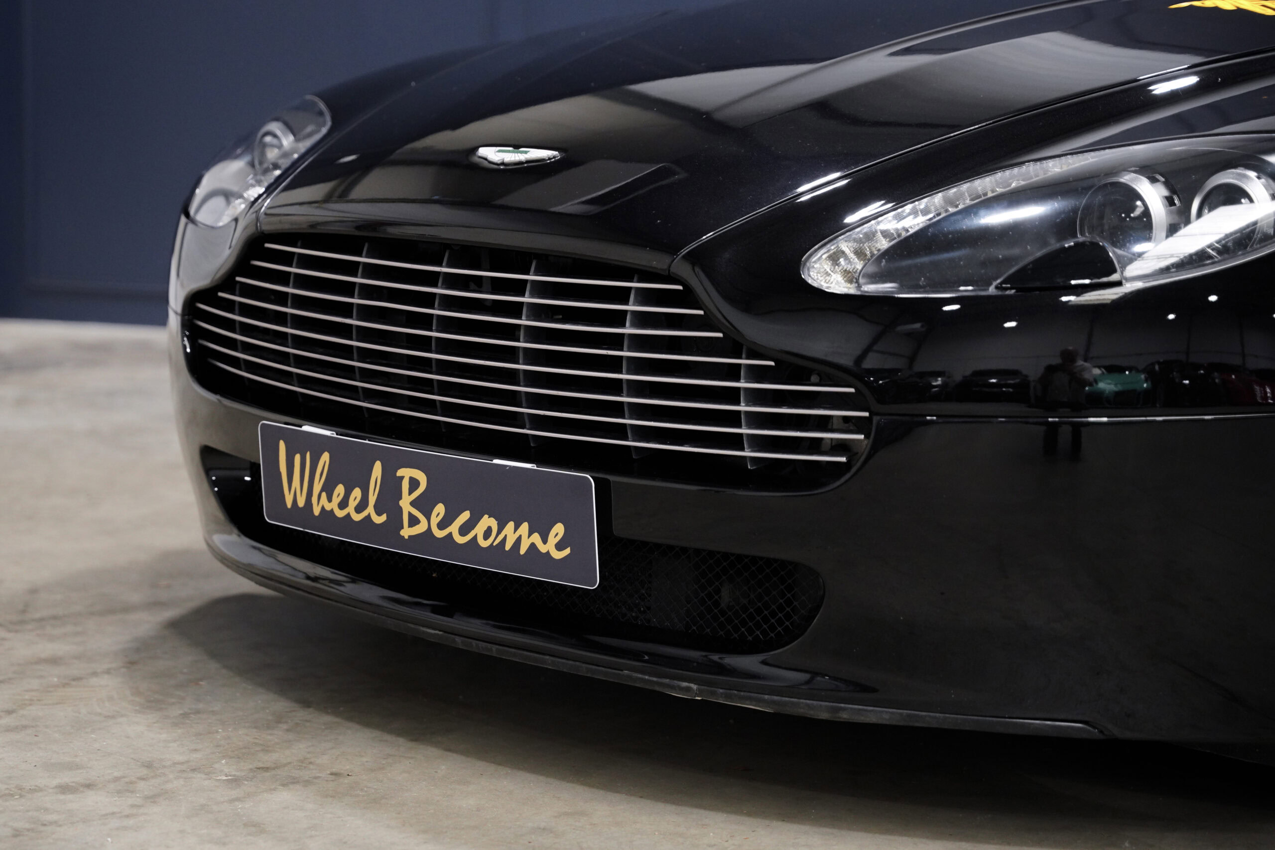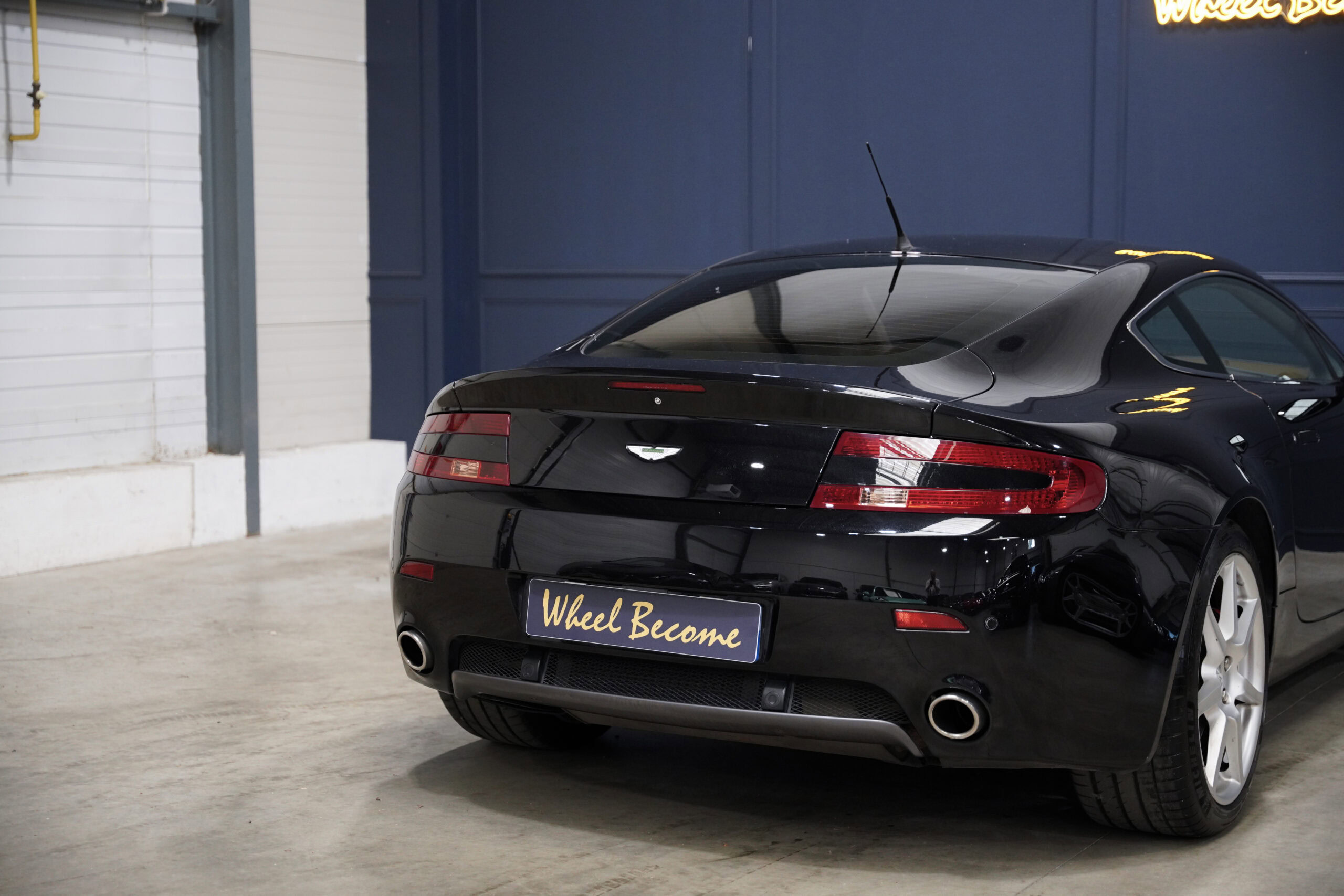 Wheel Become, professionnel de l’automobile de sport et collection vous propose à la vente cette splendide Aston Martin V8 Vantage 4.3 boite mécanique de 385cv. La Baby Aston doit son incroyable ligne de carrosserie au designer danois Henrik Fisker. Celui-ci a su créer un coupé élégant et soigné grâce à des détails discrets tels que les poignées de portes encastrées, les sorties d’échappement intégrées au diffuseur et l’incontournable calandre Aston-Martin. Sous le capot, on trouve le V8 4.3 de 385 chevaux qui offre une sonorité exacerbée et franche, surtout au-delà de 4000 tr/min où le grognement devient hurlement. La GT se voit dotée d’une boite de vitesse manuelle pour offrir encore plus de plaisir et de sensation à son conducteur.