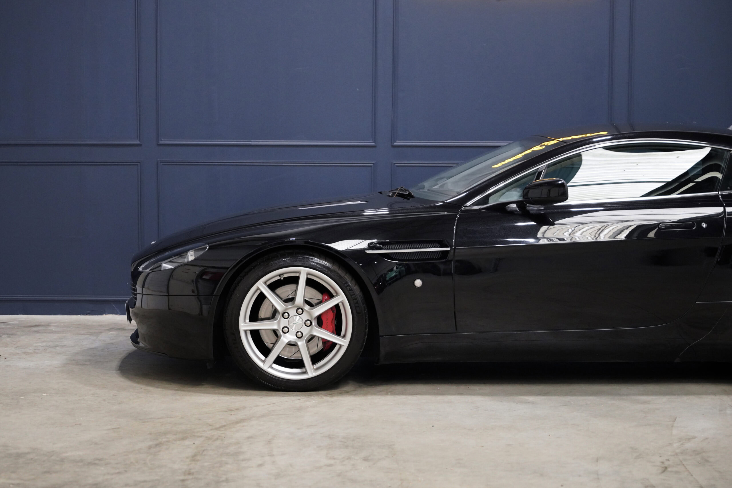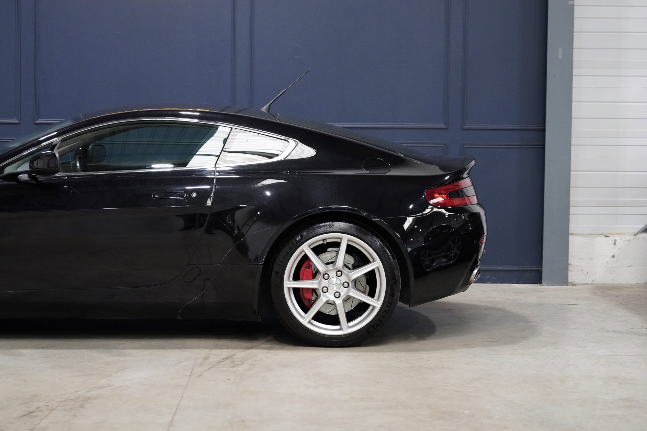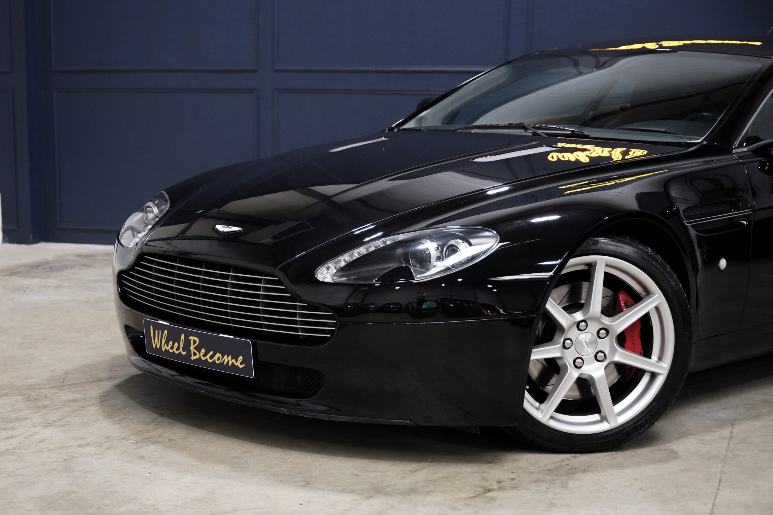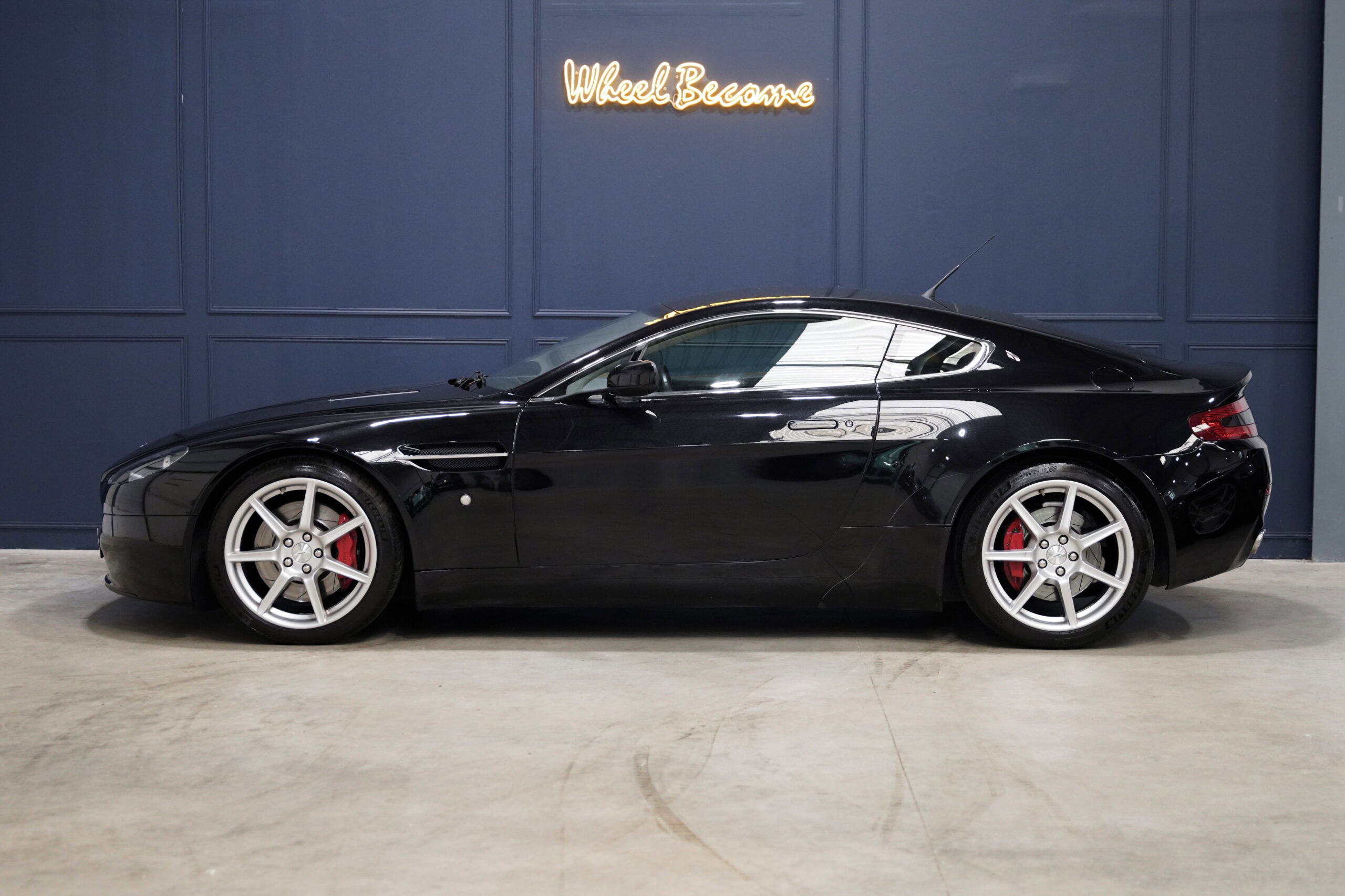 Wheel Become, professionnel de l’automobile de sport et collection vous propose à la vente cette splendide Aston Martin V8 Vantage 4.3 boite mécanique de 385cv. La Baby Aston doit son incroyable ligne de carrosserie au designer danois Henrik Fisker. Celui-ci a su créer un coupé élégant et soigné grâce à des détails discrets tels que les poignées de portes encastrées, les sorties d’échappement intégrées au diffuseur et l’incontournable calandre Aston-Martin. Sous le capot, on trouve le V8 4.3 de 385 chevaux qui offre une sonorité exacerbée et franche, surtout au-delà de 4000 tr/min où le grognement devient hurlement. La GT se voit dotée d’une boite de vitesse manuelle pour offrir encore plus de plaisir et de sensation à son conducteur.