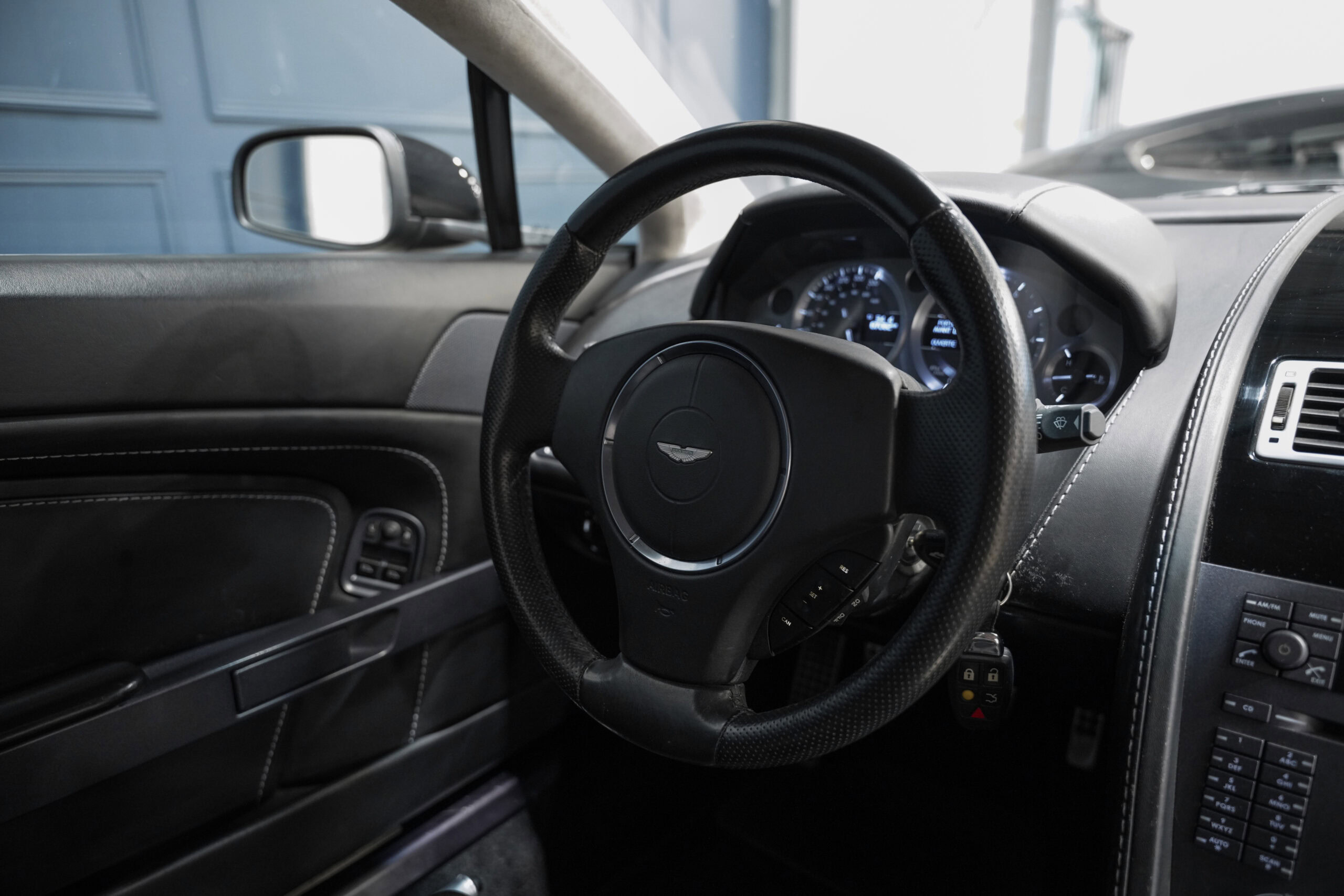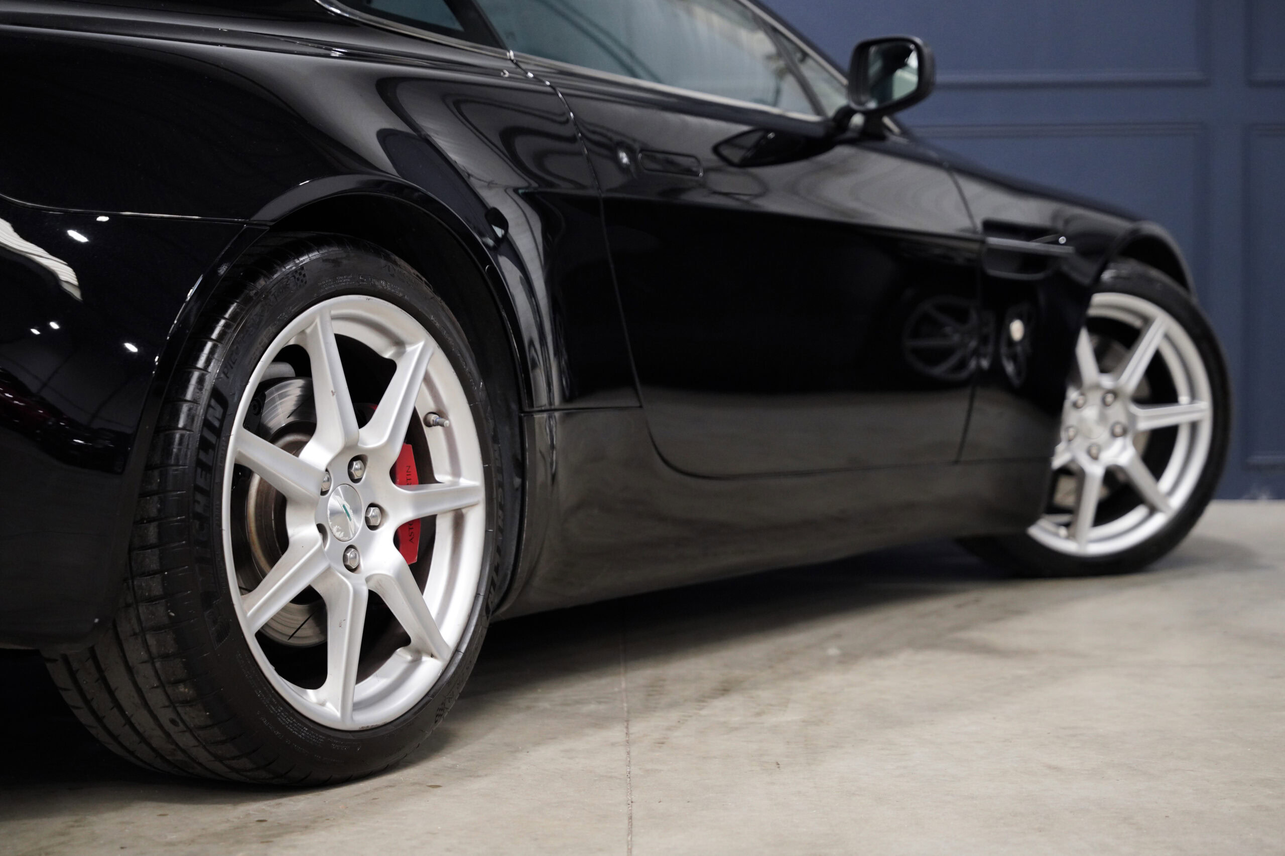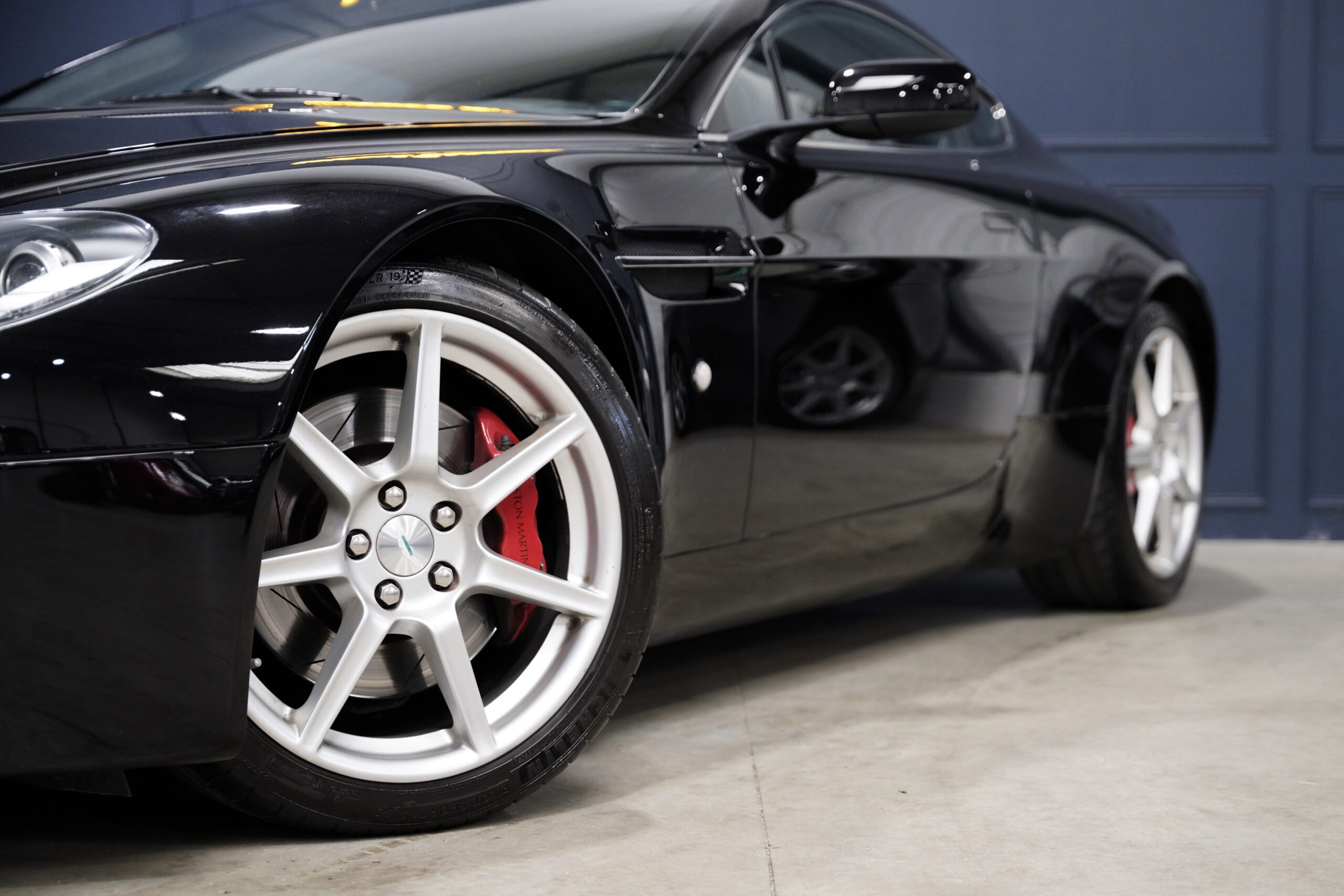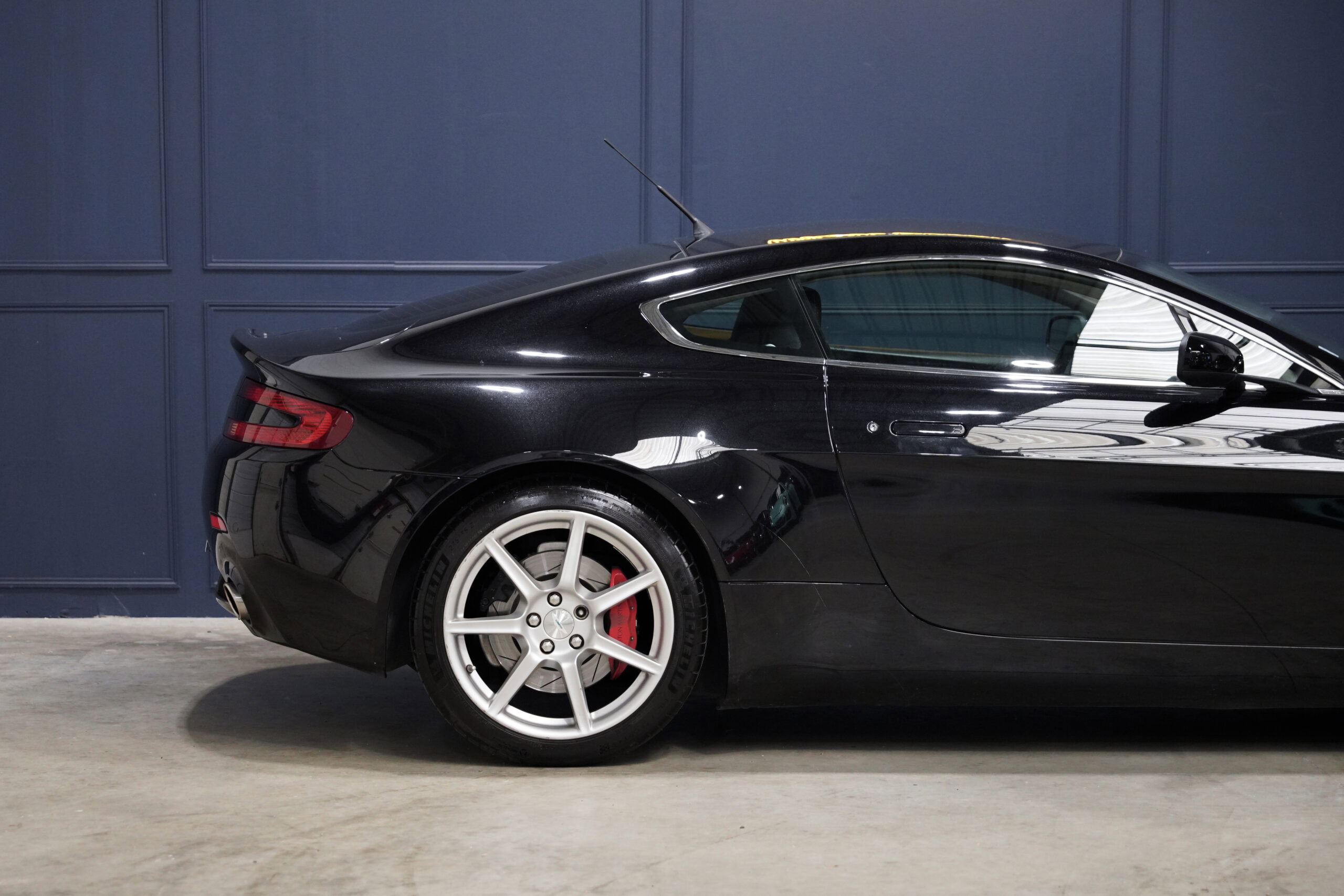 Wheel Become, professionnel de l’automobile de sport et collection vous propose à la vente cette splendide Aston Martin V8 Vantage 4.3 boite mécanique de 385cv. La Baby Aston doit son incroyable ligne de carrosserie au designer danois Henrik Fisker. Celui-ci a su créer un coupé élégant et soigné grâce à des détails discrets tels que les poignées de portes encastrées, les sorties d’échappement intégrées au diffuseur et l’incontournable calandre Aston-Martin. Sous le capot, on trouve le V8 4.3 de 385 chevaux qui offre une sonorité exacerbée et franche, surtout au-delà de 4000 tr/min où le grognement devient hurlement. La GT se voit dotée d’une boite de vitesse manuelle pour offrir encore plus de plaisir et de sensation à son conducteur.