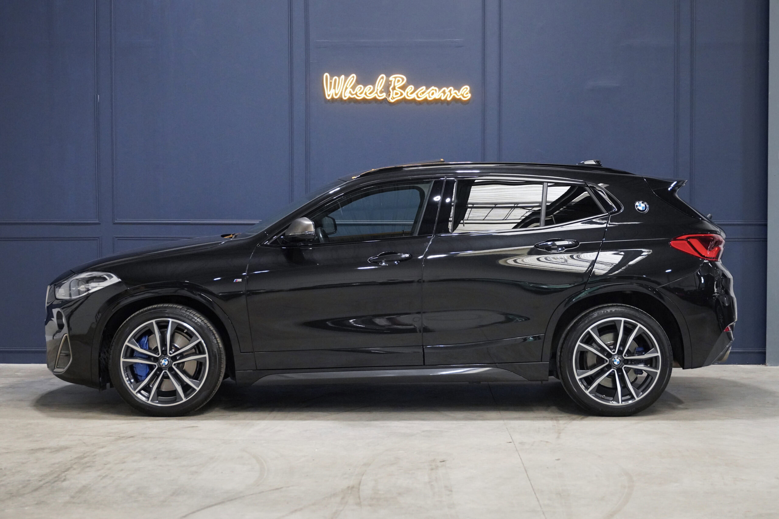 Wheel Become, professionnel de l’automobile de sport et collection vous propose à la vente ce superbe BMW X2 M35iA 306cv M Performance xDrive. Cette fois-ci, c’est le petit SUV X2 qui est passé dans les mains de Motorsport pour une cure de stéroïde. Malgré quelques détails esthétiques tels que la double sortie d’échappement, le béquet spécifique et le coloris Cerium Grey sur la calandre et les rétros, les gros changements interviennent sous le capot. La division sport de chez BMW a installé un 2.0 turbocompressé qui ne fait pas moins de 306cv, une boite steptronic à huit rapports, des suspensions M Sport adaptatives, un système de freinage optimisé, la transmission intégrale XDrive et un différentiel M Sport à l’avant limitant les pertes d’adhérence. Il s’agit bien d’un cocktail explosif qui métamorphose la voiture et donne tout simplement le sourire.