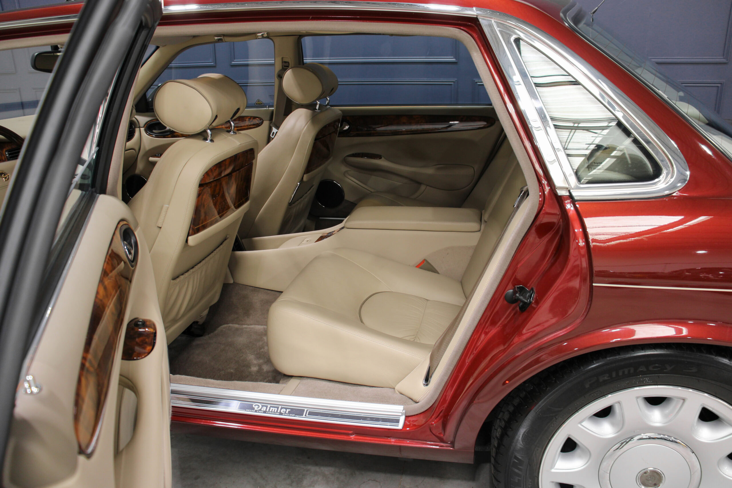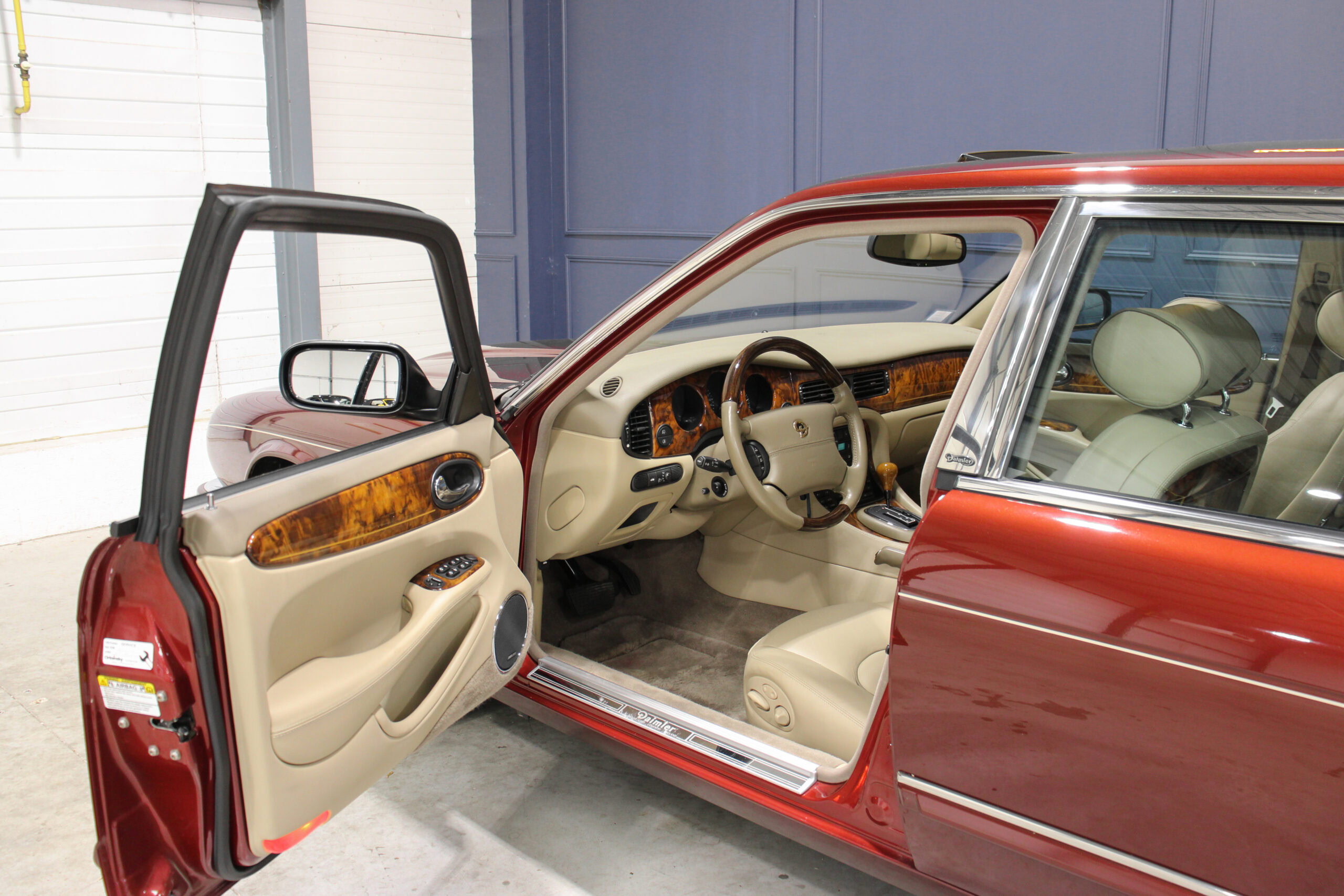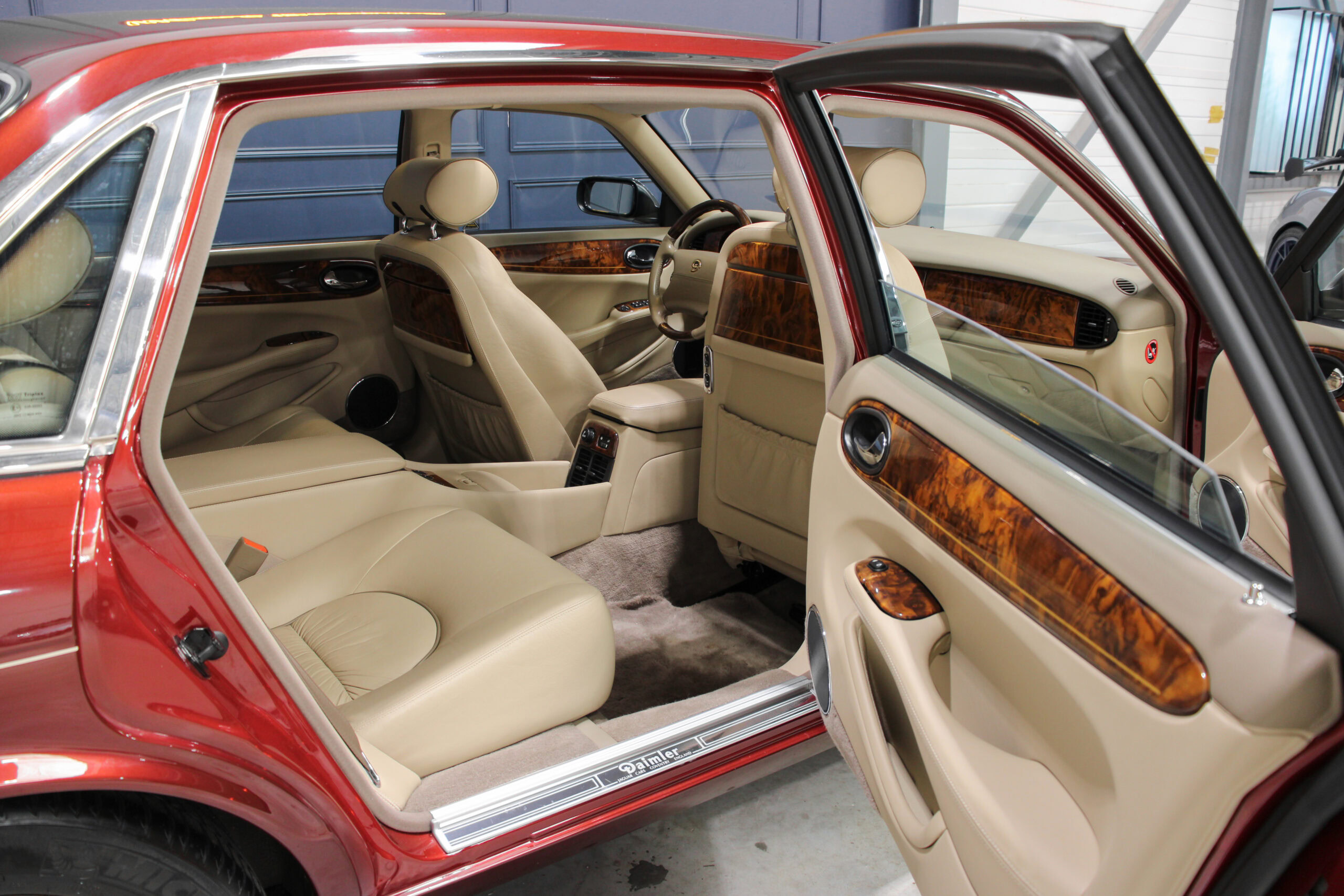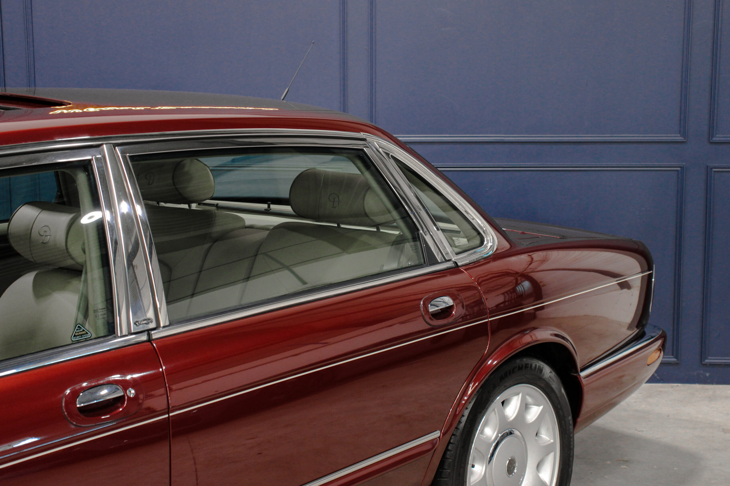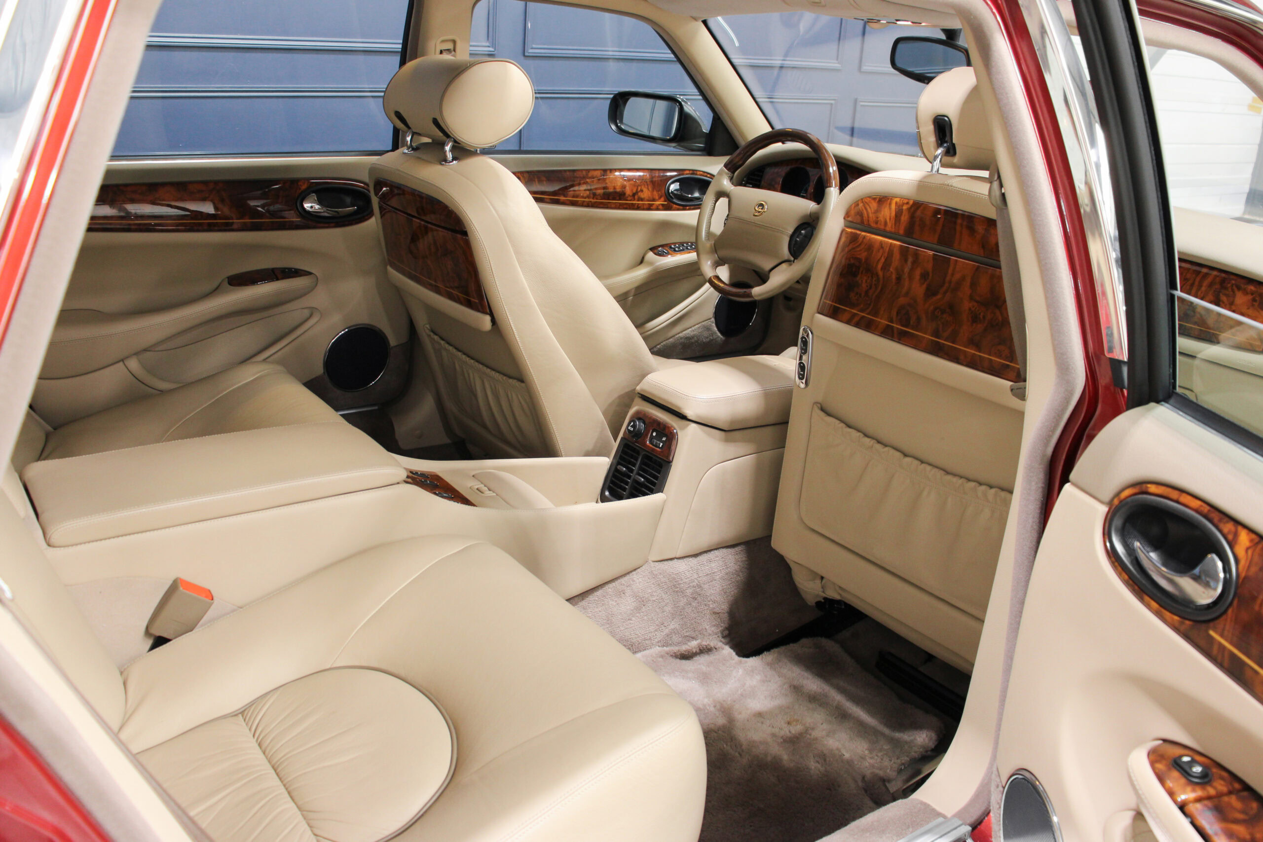 Wheel Become propose à la vente cette magnifique Jaguar Daimler Super V8 LWB V8 de 375cv X308 (empâtement long). Pour sauver la marque, Jaguar lance en 1994 la nouvelle version de la XJ sous le nom de code X300. Mais il faudra attendre 1997 pour que la seconde version voit le jour avec un incroyable moteur V8 équipé d’un compresseur et développant 375cv, moteur issu bien sûr de chez Jaguar et non de chez Ford. Avec seulement 2463 exemplaires produits, il s’agit d’un modèle plutôt rare surtout dans sa déclinaison Daimler, la plus luxueuse disponible au catalogue.