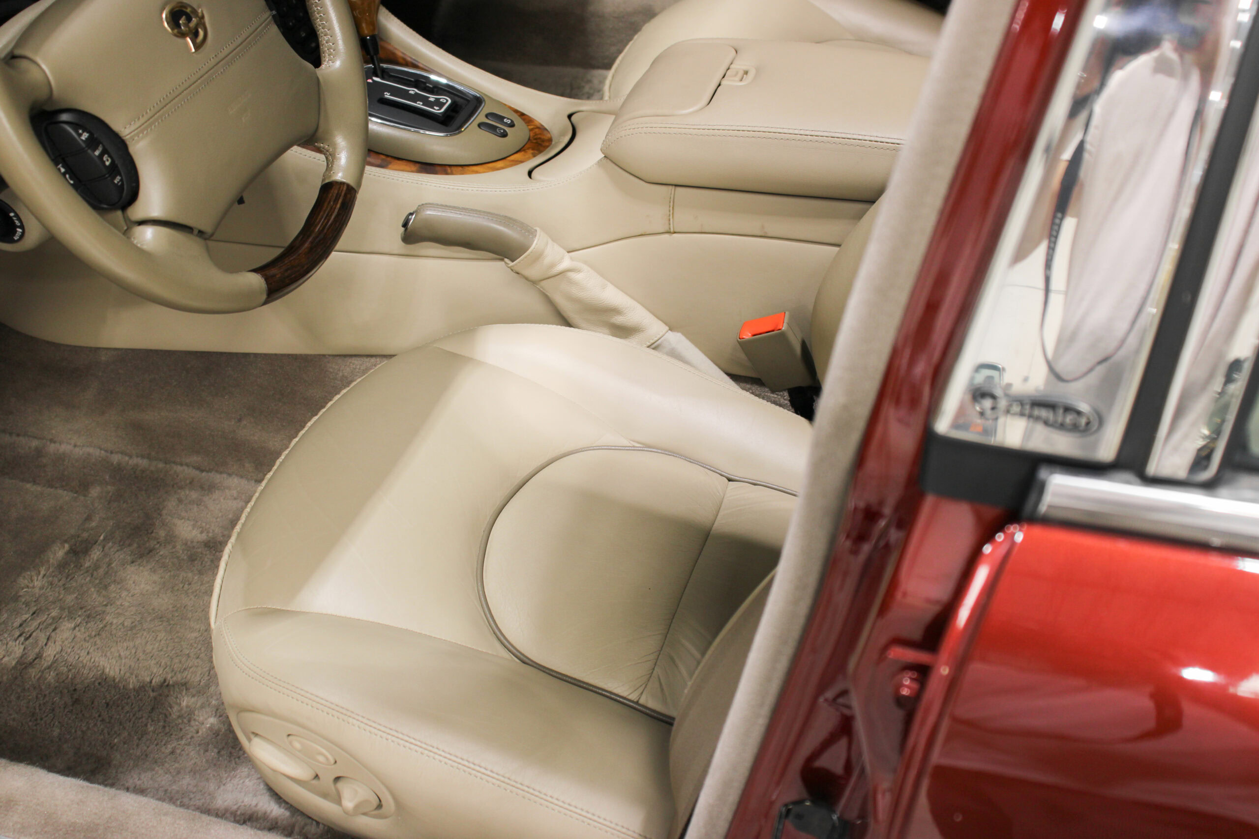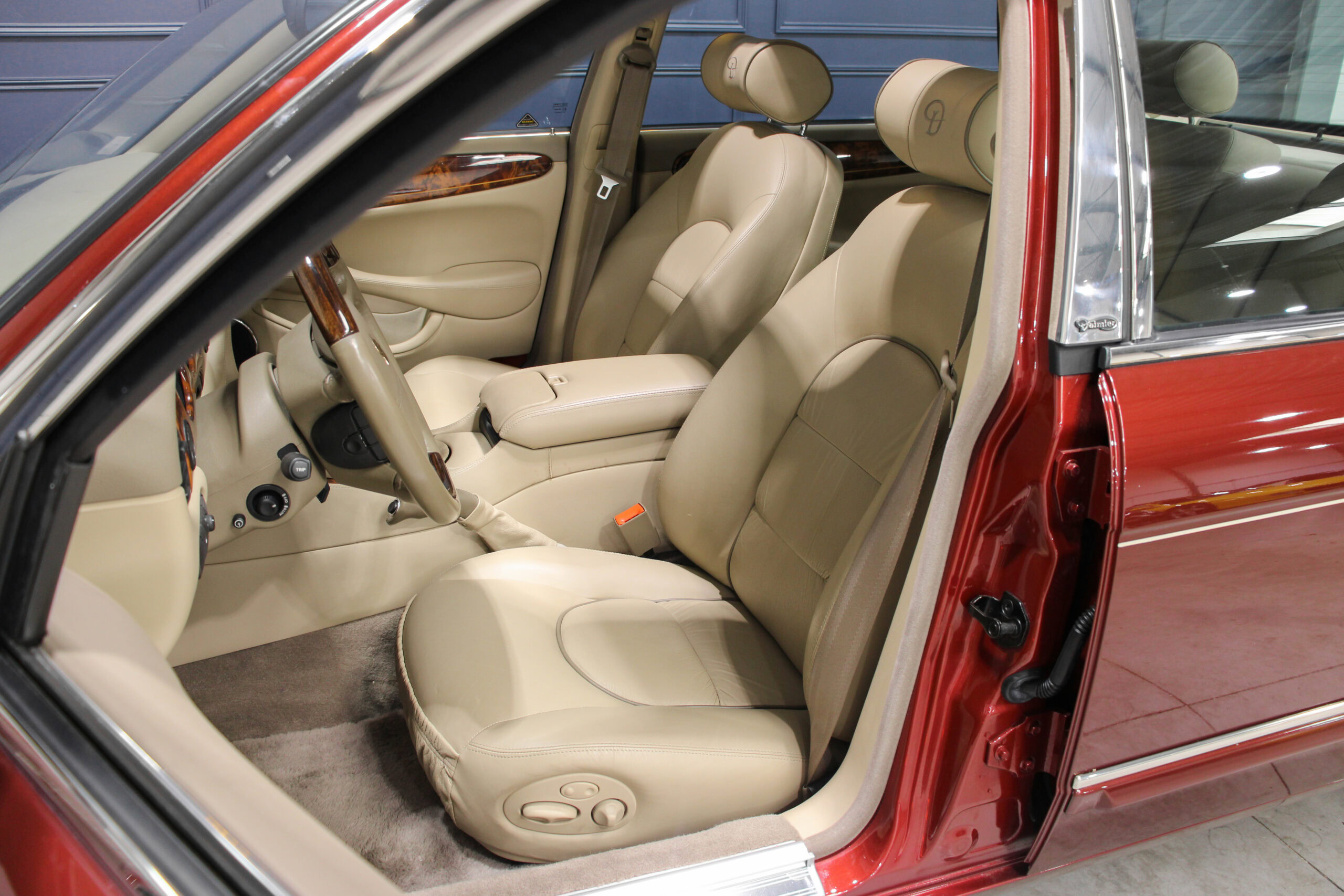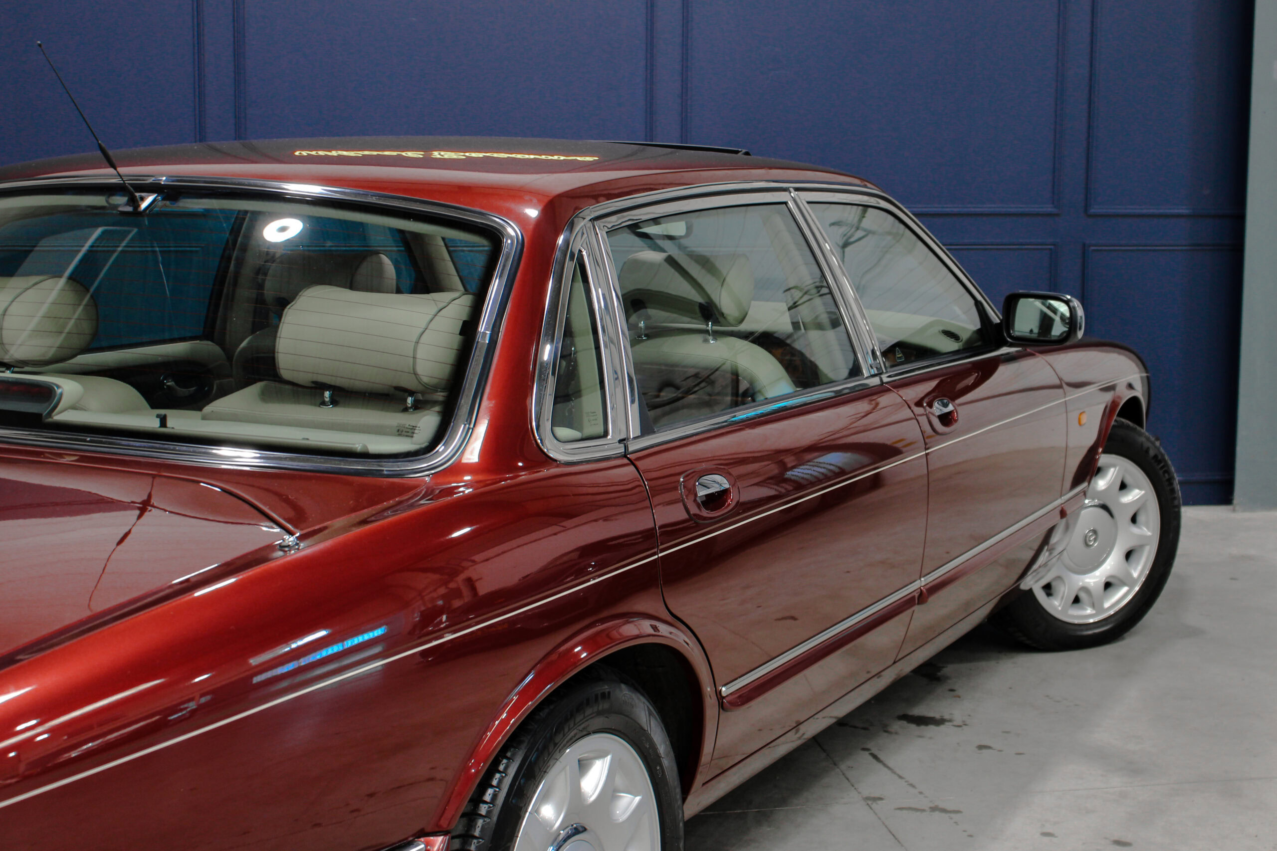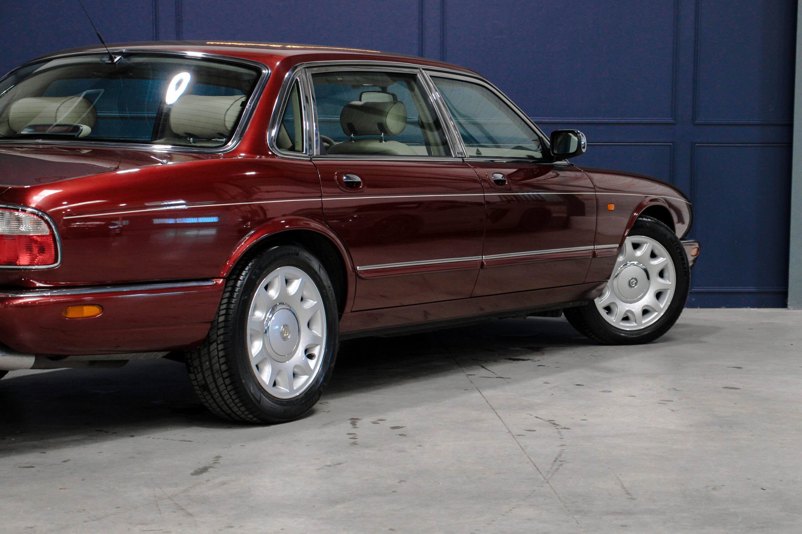Wheel Become propose à la vente cette magnifique Jaguar Daimler Super V8 LWB V8 de 375cv X308 (empâtement long). Pour sauver la marque, Jaguar lance en 1994 la nouvelle version de la XJ sous le nom de code X300. Mais il faudra attendre 1997 pour que la seconde version voit le jour avec un incroyable moteur V8 équipé d’un compresseur et développant 375cv, moteur issu bien sûr de chez Jaguar et non de chez Ford. Avec seulement 2463 exemplaires produits, il s’agit d’un modèle plutôt rare surtout dans sa déclinaison Daimler, la plus luxueuse disponible au catalogue.