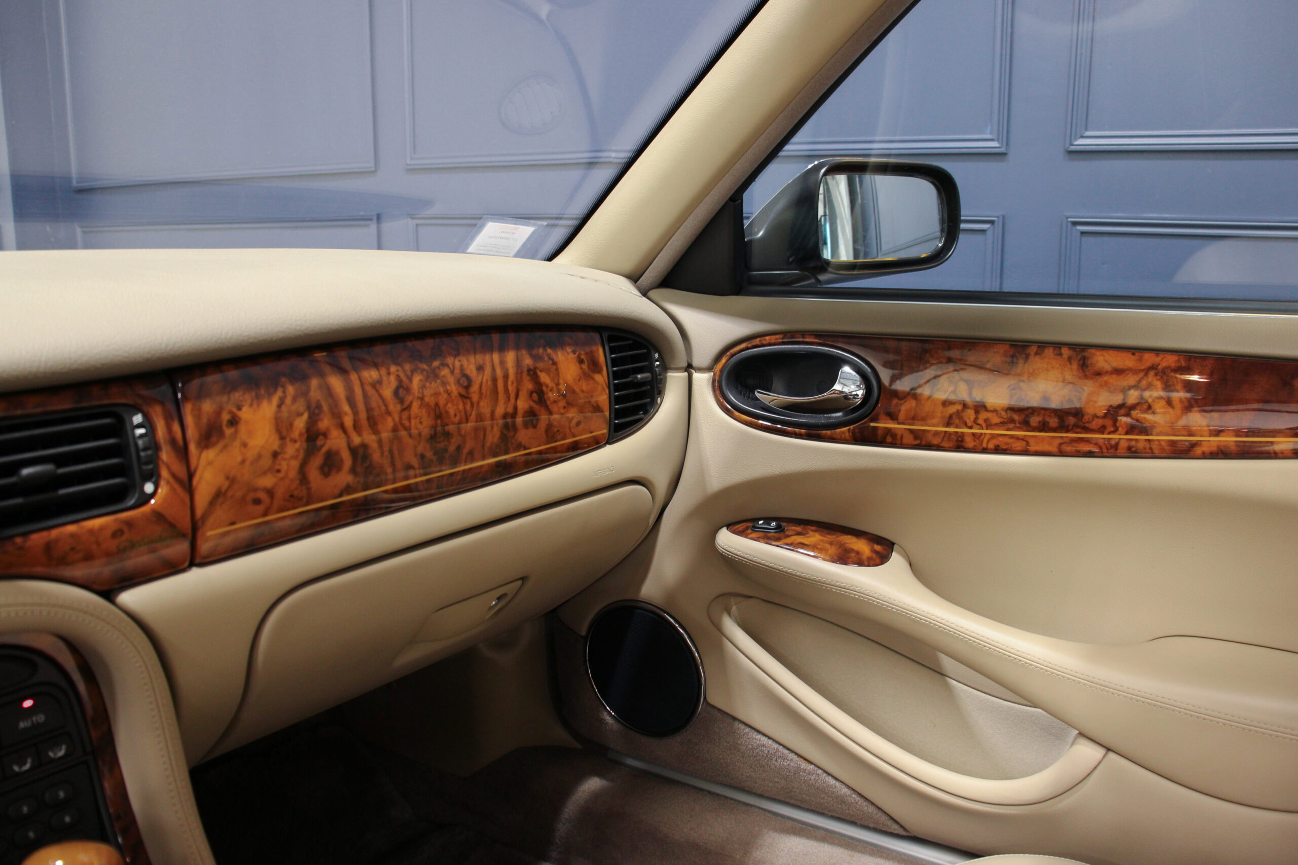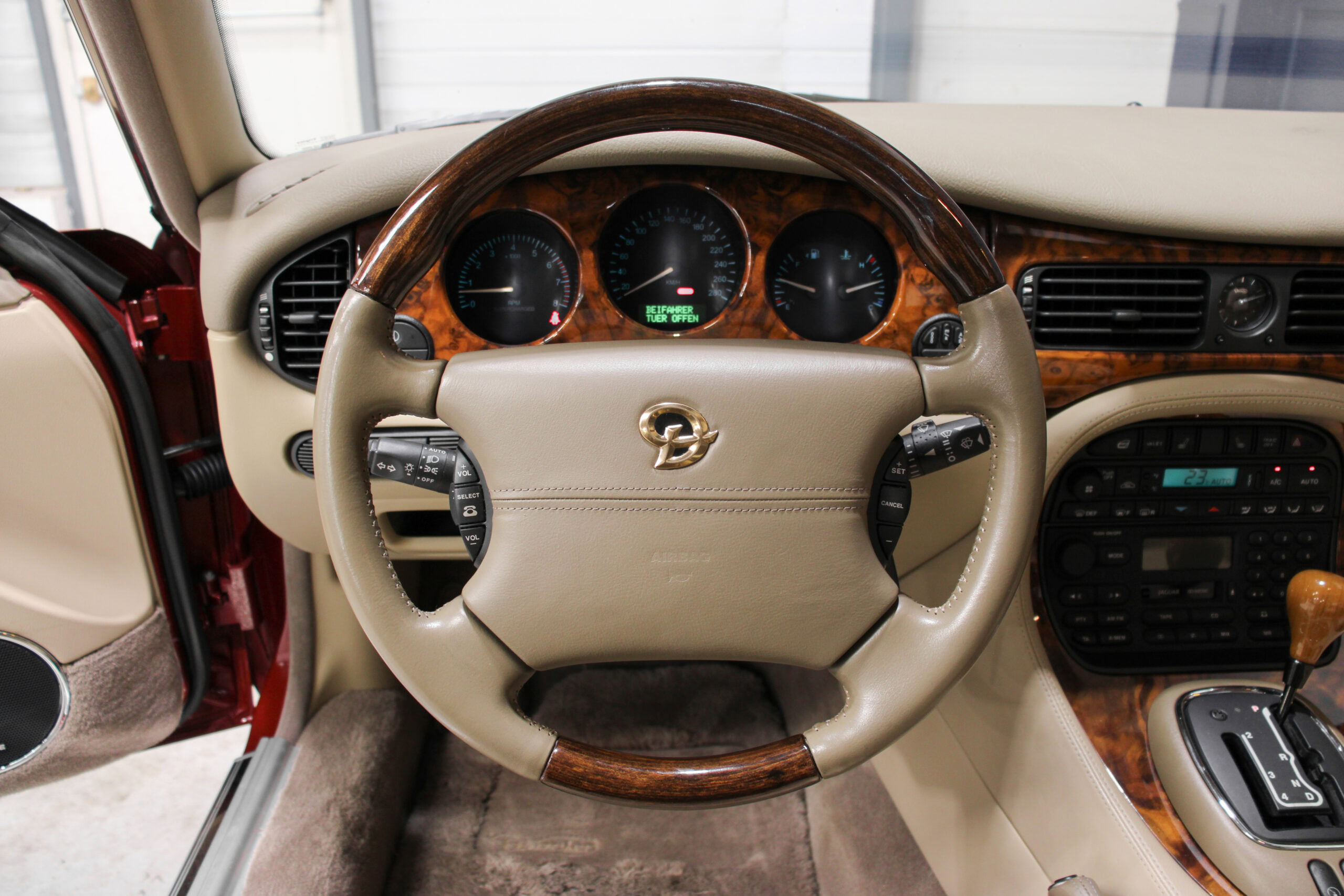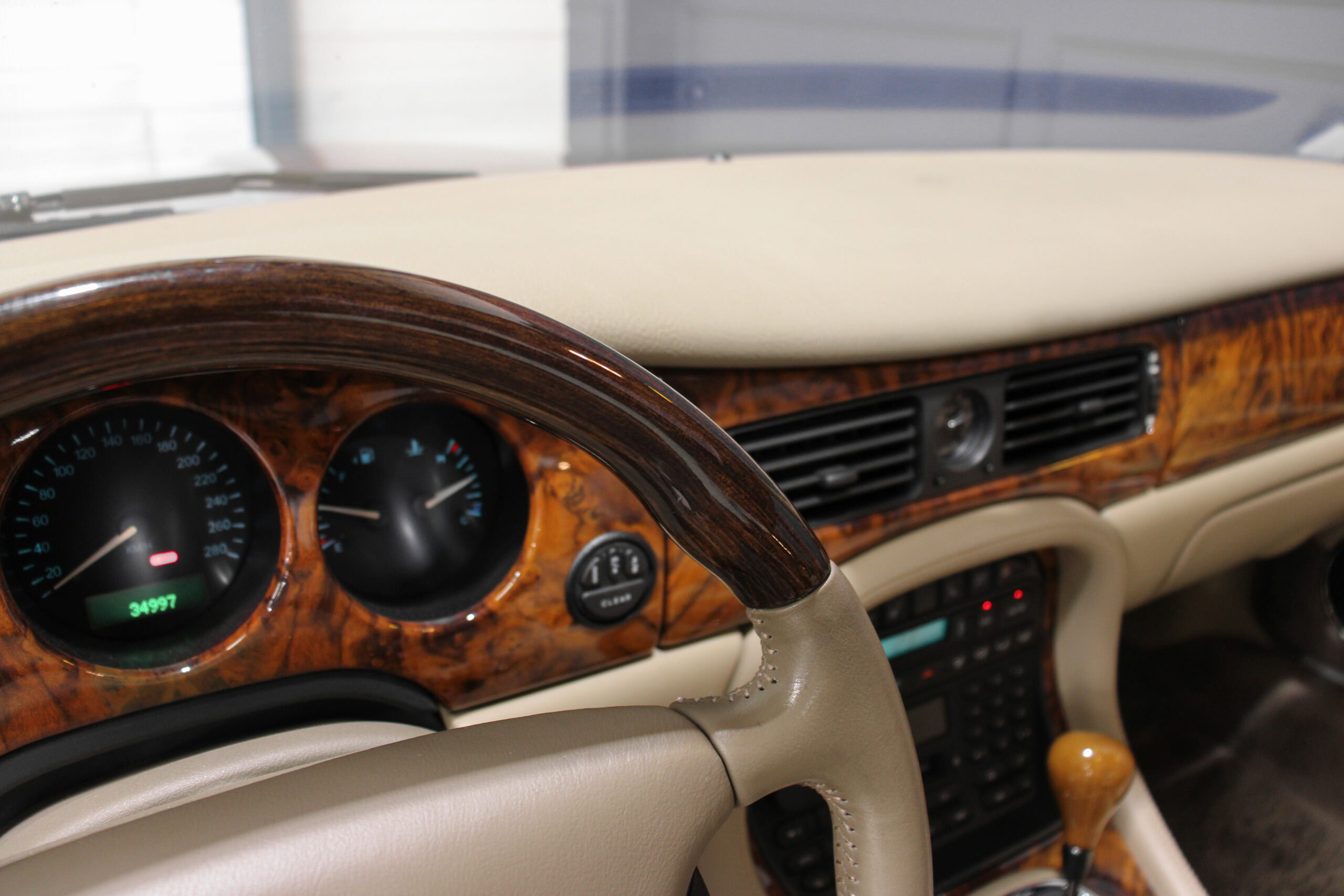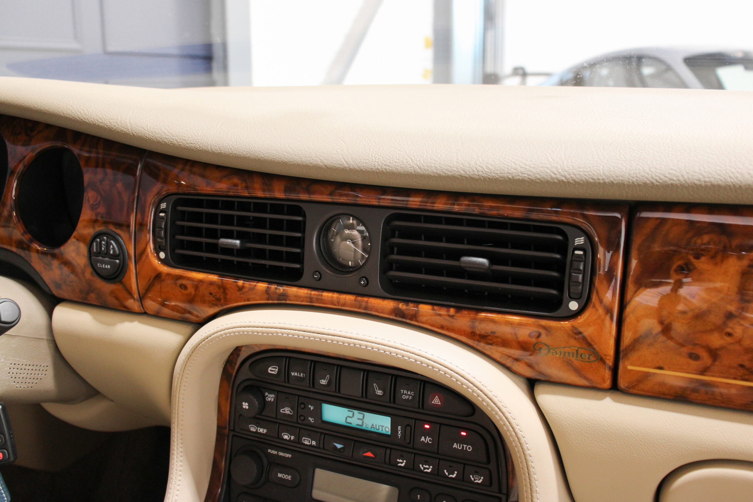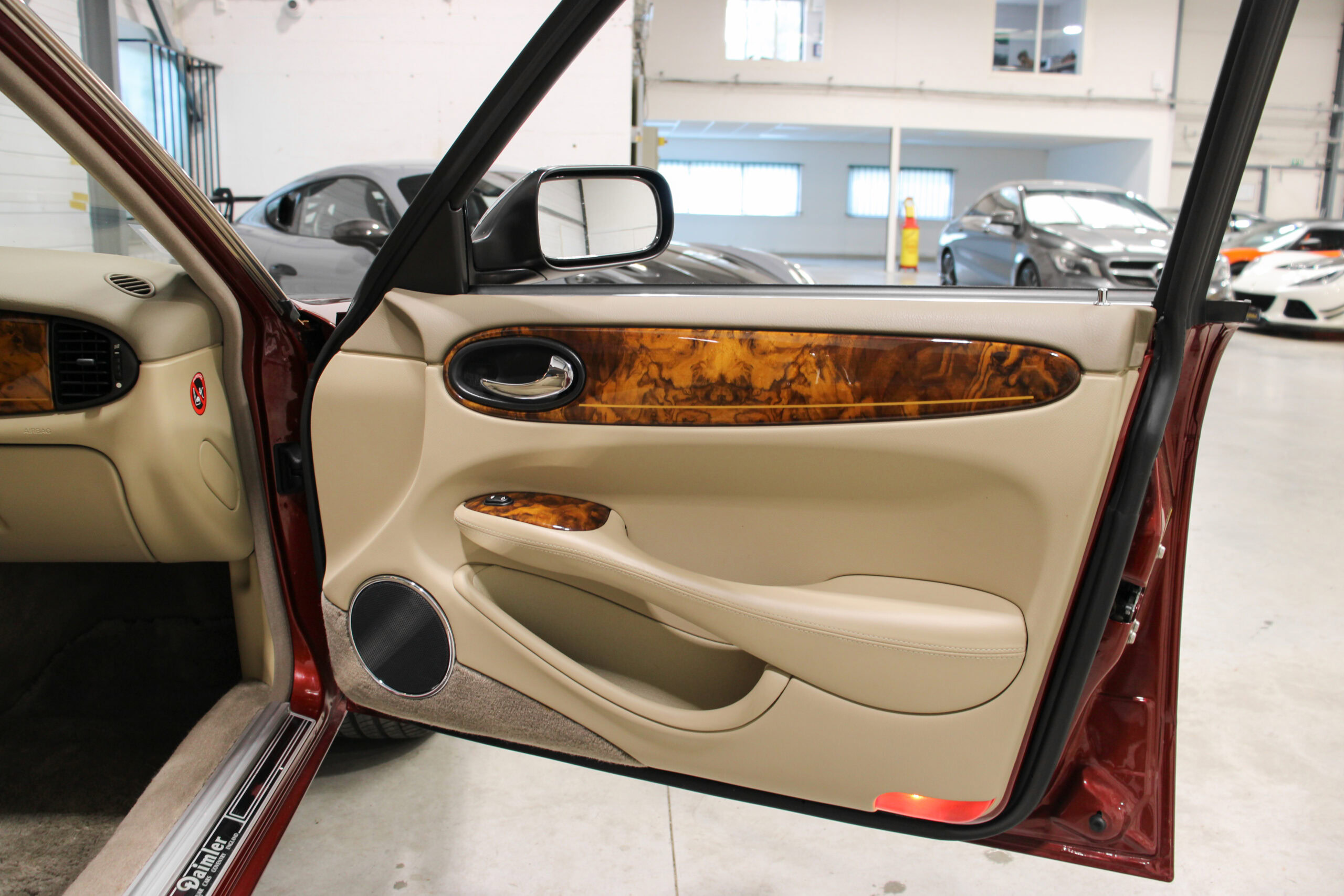 Wheel Become propose à la vente cette magnifique Jaguar Daimler Super V8 LWB V8 de 375cv X308 (empâtement long). Pour sauver la marque, Jaguar lance en 1994 la nouvelle version de la XJ sous le nom de code X300. Mais il faudra attendre 1997 pour que la seconde version voit le jour avec un incroyable moteur V8 équipé d’un compresseur et développant 375cv, moteur issu bien sûr de chez Jaguar et non de chez Ford. Avec seulement 2463 exemplaires produits, il s’agit d’un modèle plutôt rare surtout dans sa déclinaison Daimler, la plus luxueuse disponible au catalogue.