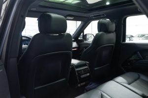Notre exemplaire se démarque par son historique plus que limpide, il s’agit d’une première main, origine France, TVA récupérable, avec seulement 39.900km au compteur et un historique d’entretien exclusivement Land Rover, la dernière révision vient d’ailleurs d’être effectuée afin que son nouveau propriétaire n’ait rien à prévoir. De plus la garantie constructeur court encore jusqu’en août 2028 ou 150.000km. L’autre atout réside dans sa très jolie configuration qui offre une abondance d’options, il bénéficie notamment des jantes 23 gloss black, du black pack, du grand toit panoramique, des sièges électriques, chauffants à l’avant mais aussi à l’arrière, du régulateur adaptatif, de la hifi Meridian 3D, de la caméra 360 degrés et ce n’est qu’une ébauche du très, très long listing détaillé ci-dessous.