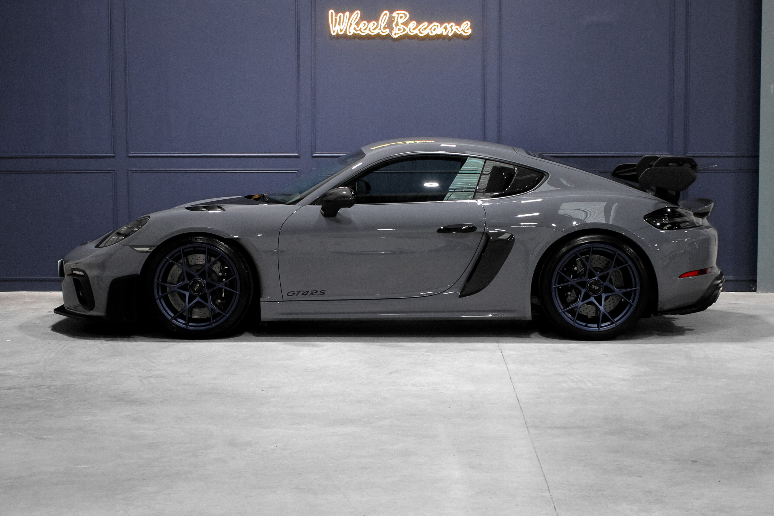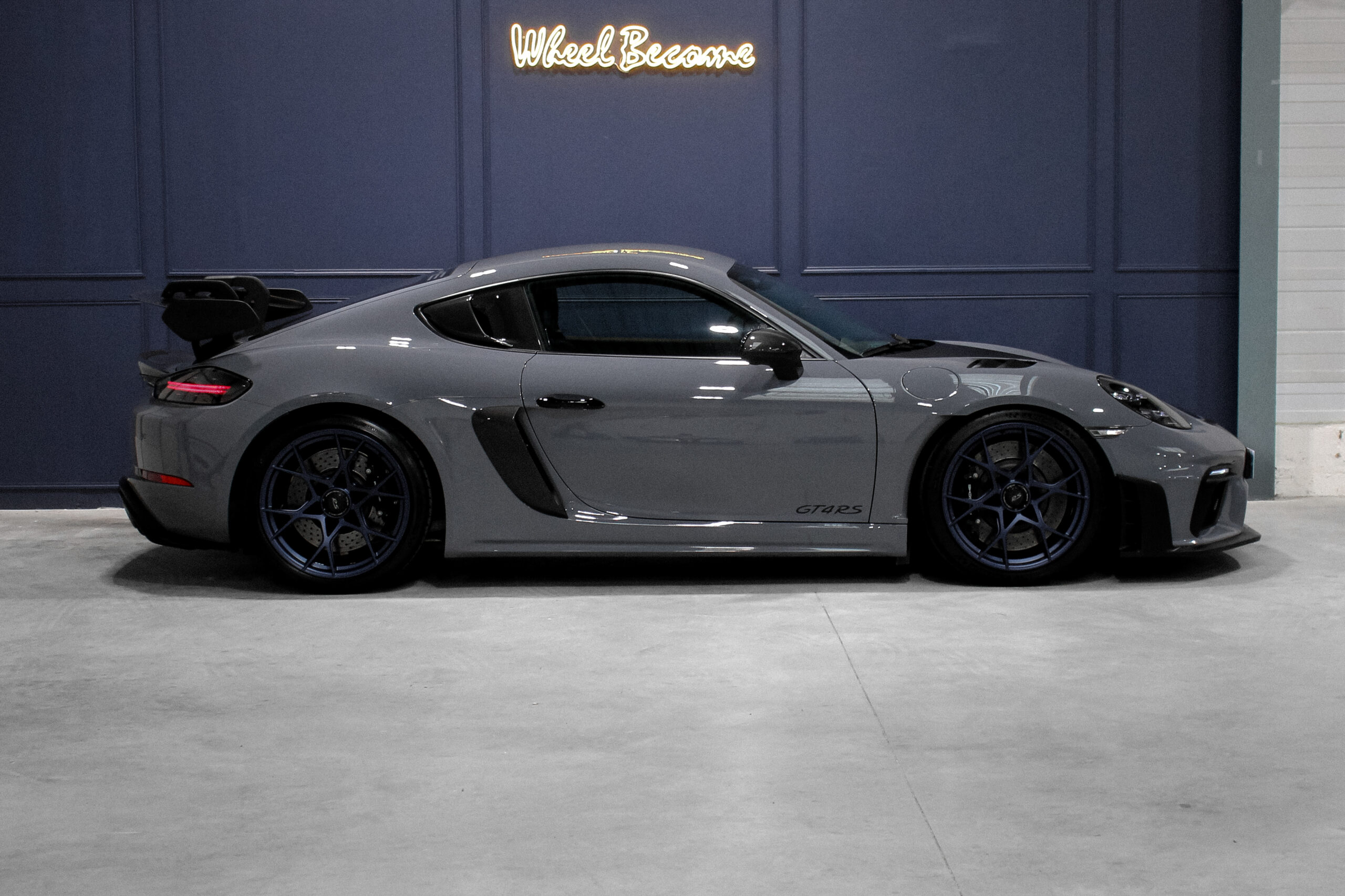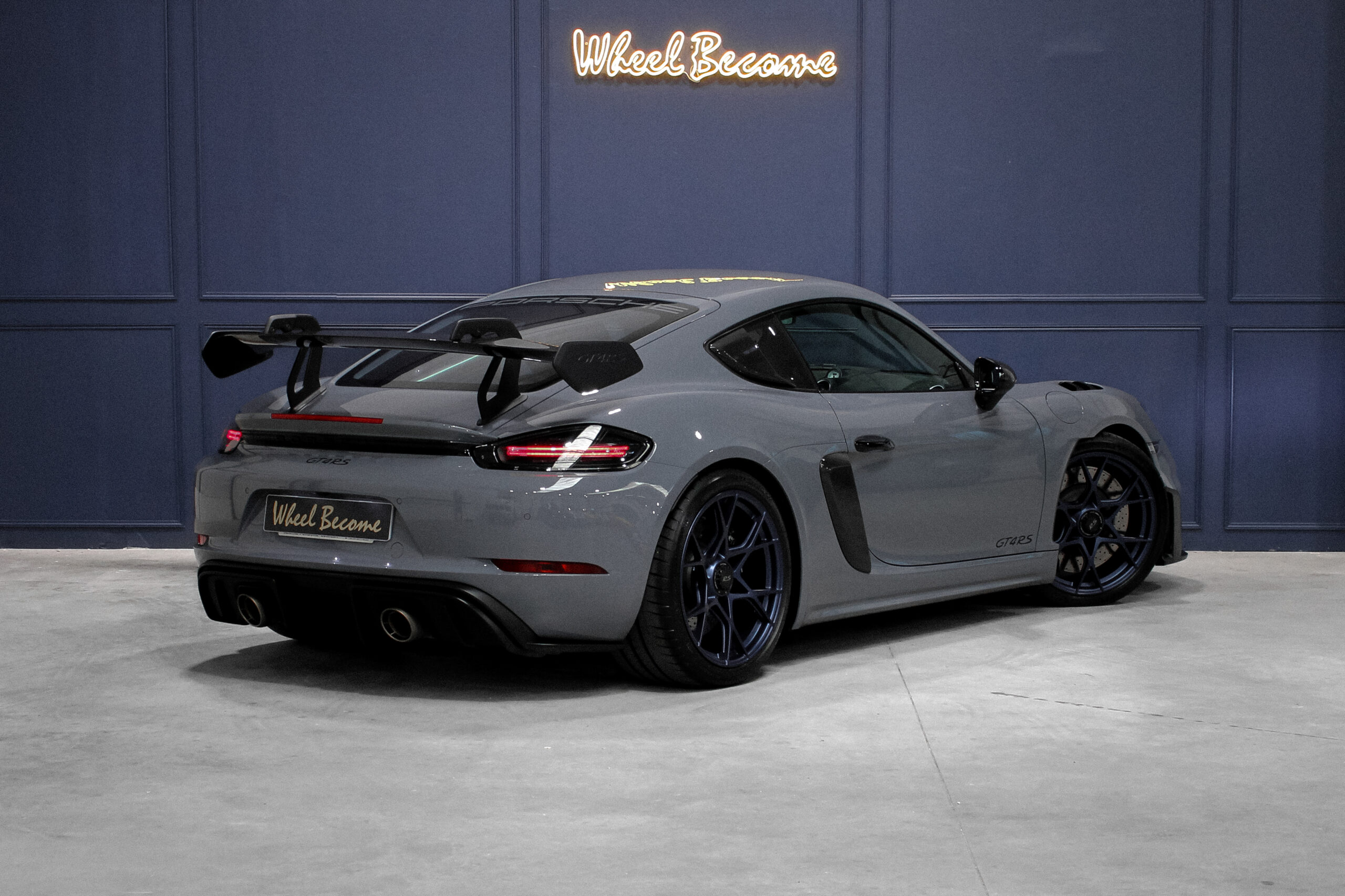 Wheel Become propose à la vente cette incroyable Porsche 718 Cayman GT4 RS 4.0 500cv Pack Weissach. Pour cette ultime version, Porsche confie à son département compétition le soin de transformer radicalement le GT4 afin d’apposer pour la première fois le mystique sigle RS sur leur coupé. Pour cela, ils utilisent le moteur de la GT3, et quel moteur, un flat 6 à plat de 4,0 atmosphérique qui nous transporte par une envolée lyrique jusqu’à son apogée à 9000 tr/min. De plus, en position centrale arrière, il lui offre une meilleure répartition des masses en comparaison de sa grande sœur la 911, faisant de celle-ci une pistarde née. Aussi son châssis est revu avec un développement proche de la compétition, pour cause l’aileron en col de cygne avec un plateau en carbone est issu de la 911 RSR.
