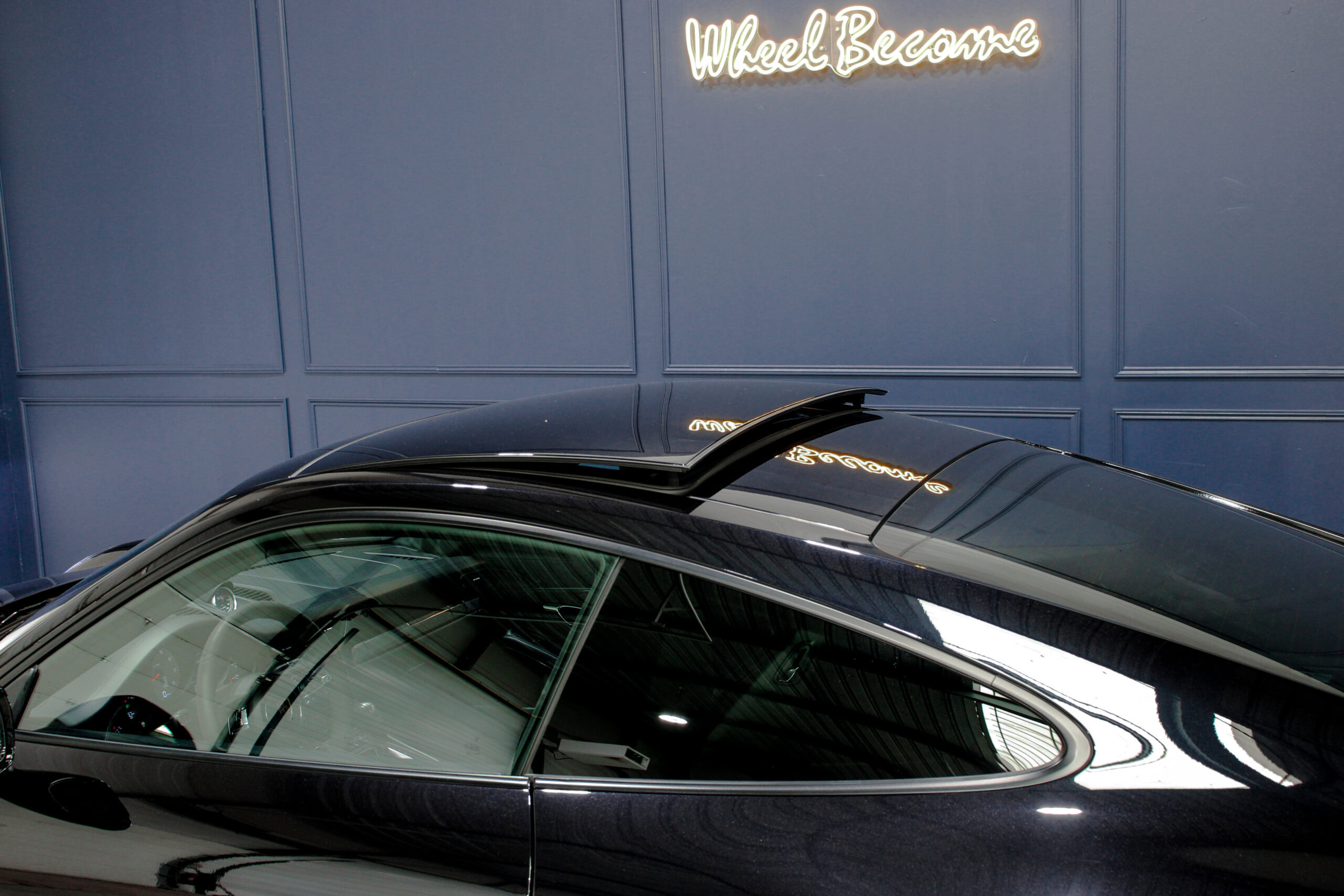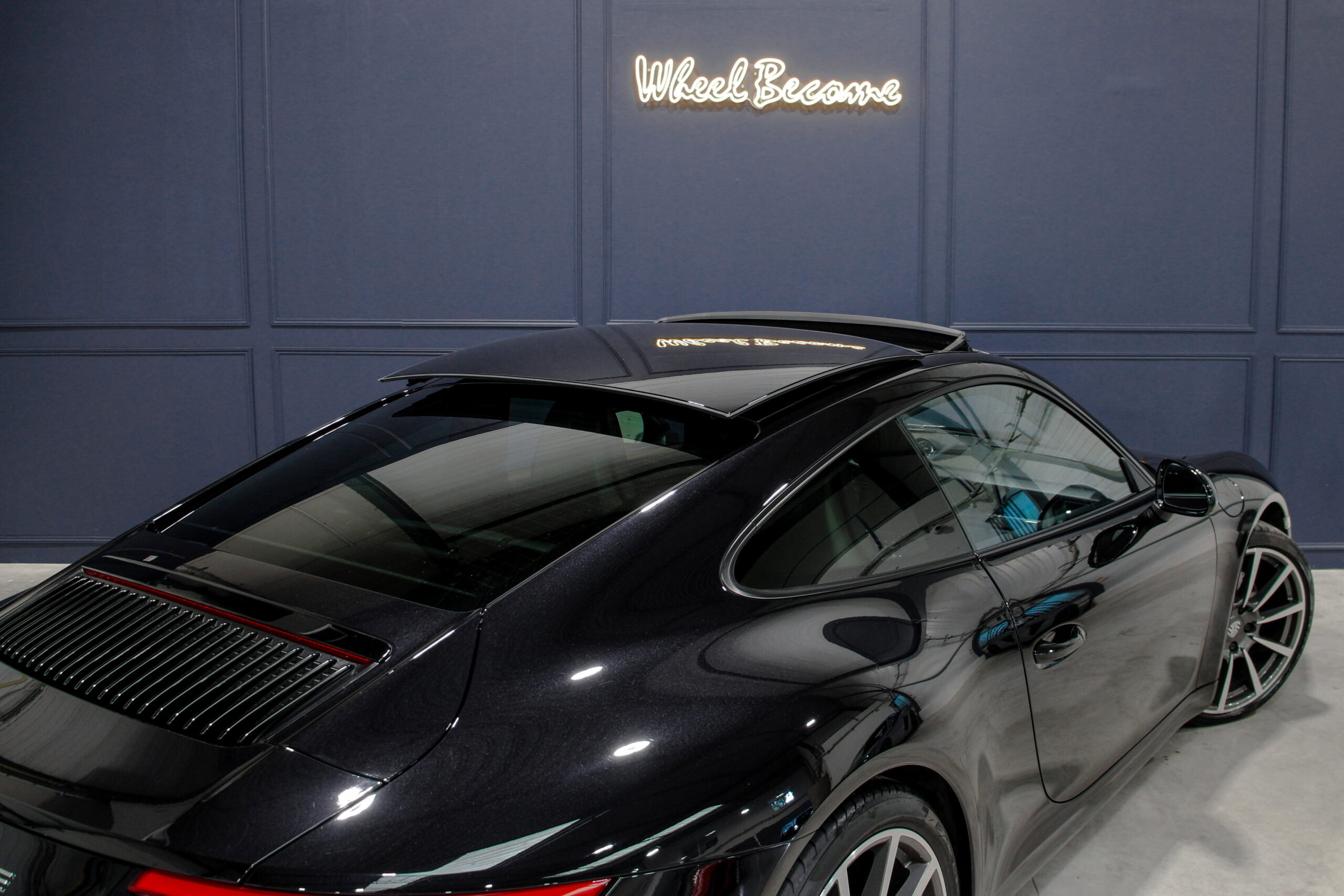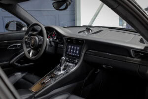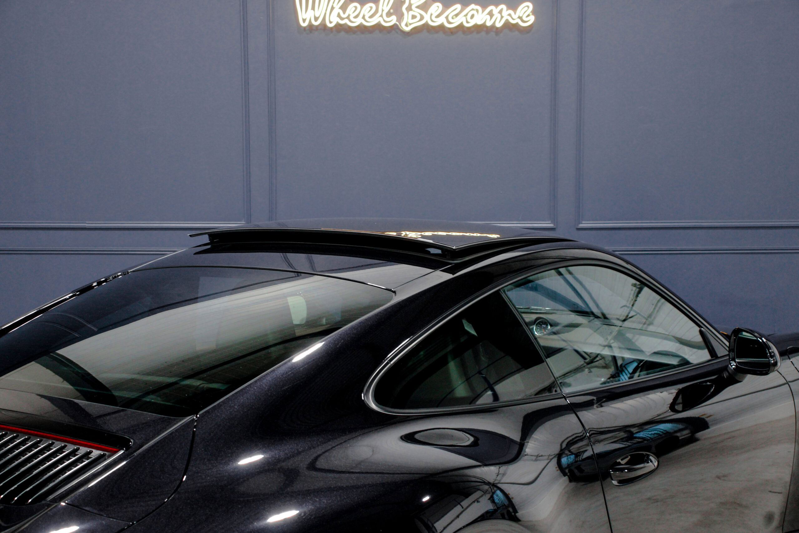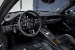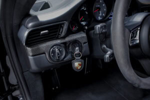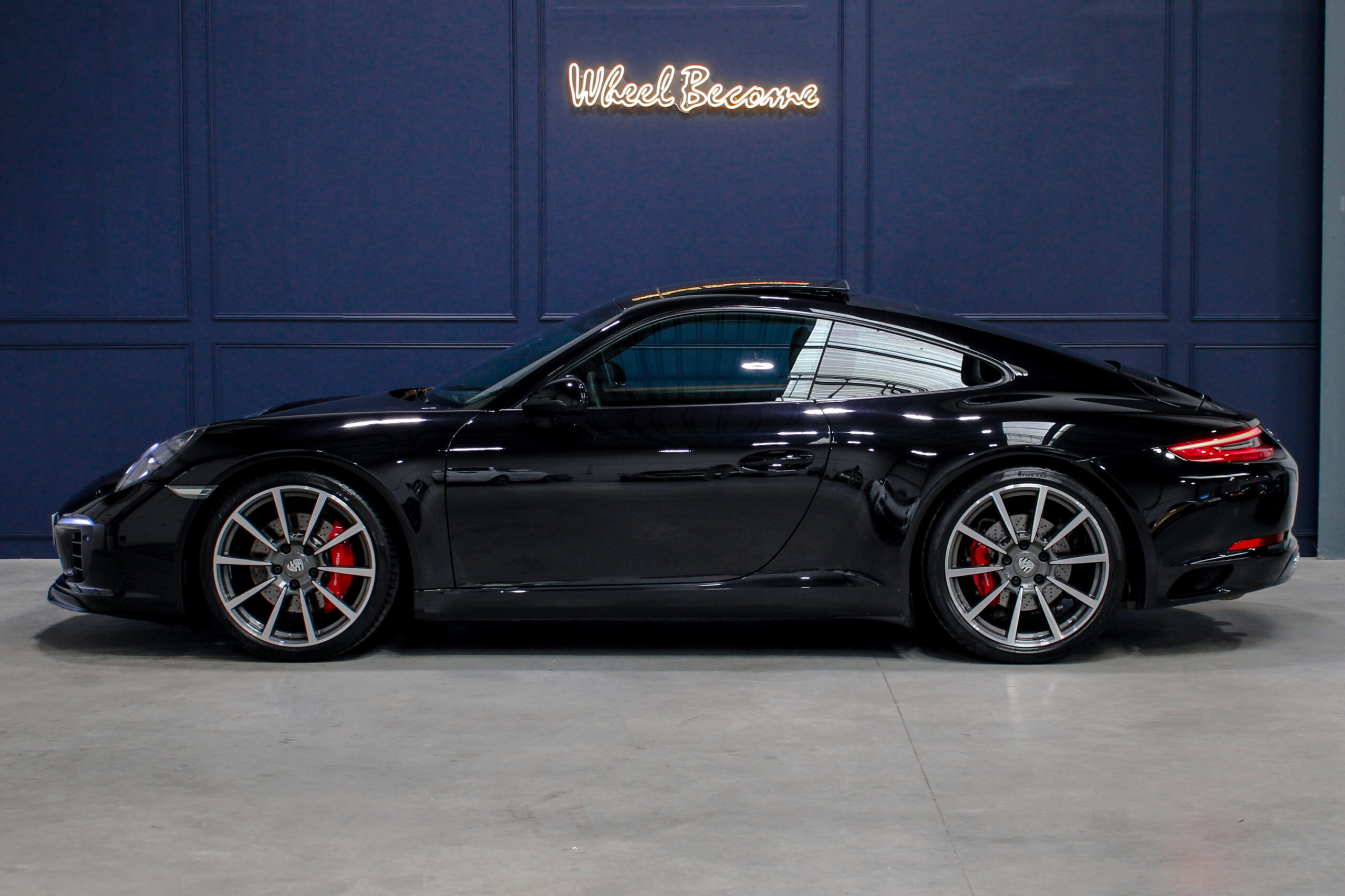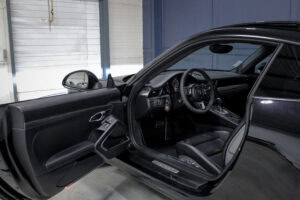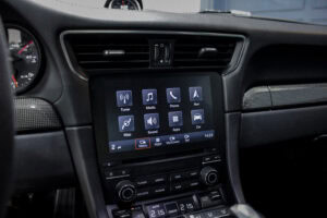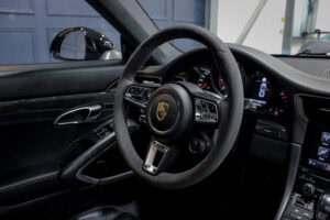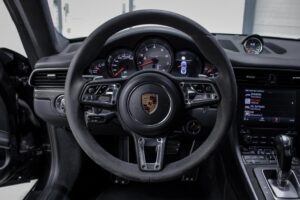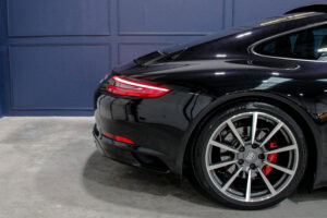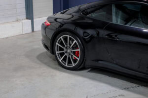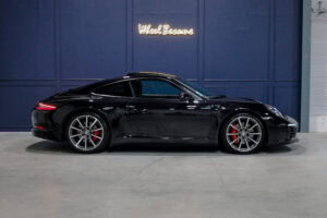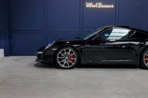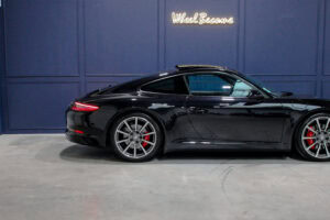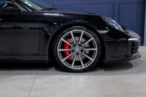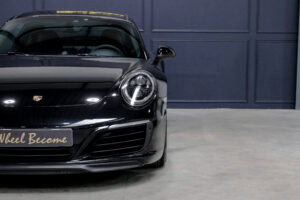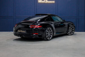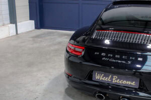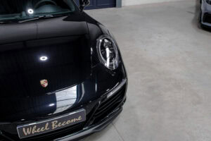 Wheel Become propose à la vente cette superbe Porsche 911 Type 991.2 Carrera S Phase 2 3,0 420cv PDK. Pour ne pas déstabiliser les amateurs, la 911 a évolué doucement mais surement au fil des générations. Cette seconde génération de 991 ne déroge pas à la règle, au contraire elle marque un tournant fort avec l’ajout de Turbos. Même si Porsche utilise cette technologie depuis de nombreuses années, c’est la première fois qu’elle est employée sur leurs grandes séries. Ainsi le moteur passe d’un 3,8 à un 3,0 bi-turbo, mais qui étonnamment marche bien plus fort et est beaucoup plus coupleux à bas régime, faisant de cette 911 une GT redoutablement efficace et extrêmement agréable à rouler au quotidien. D’autant que Porsche a réussi le tour de force de faire partiellement oublier la présence des turbos en faisant grimper le rupteur à 7.500 trs/min.