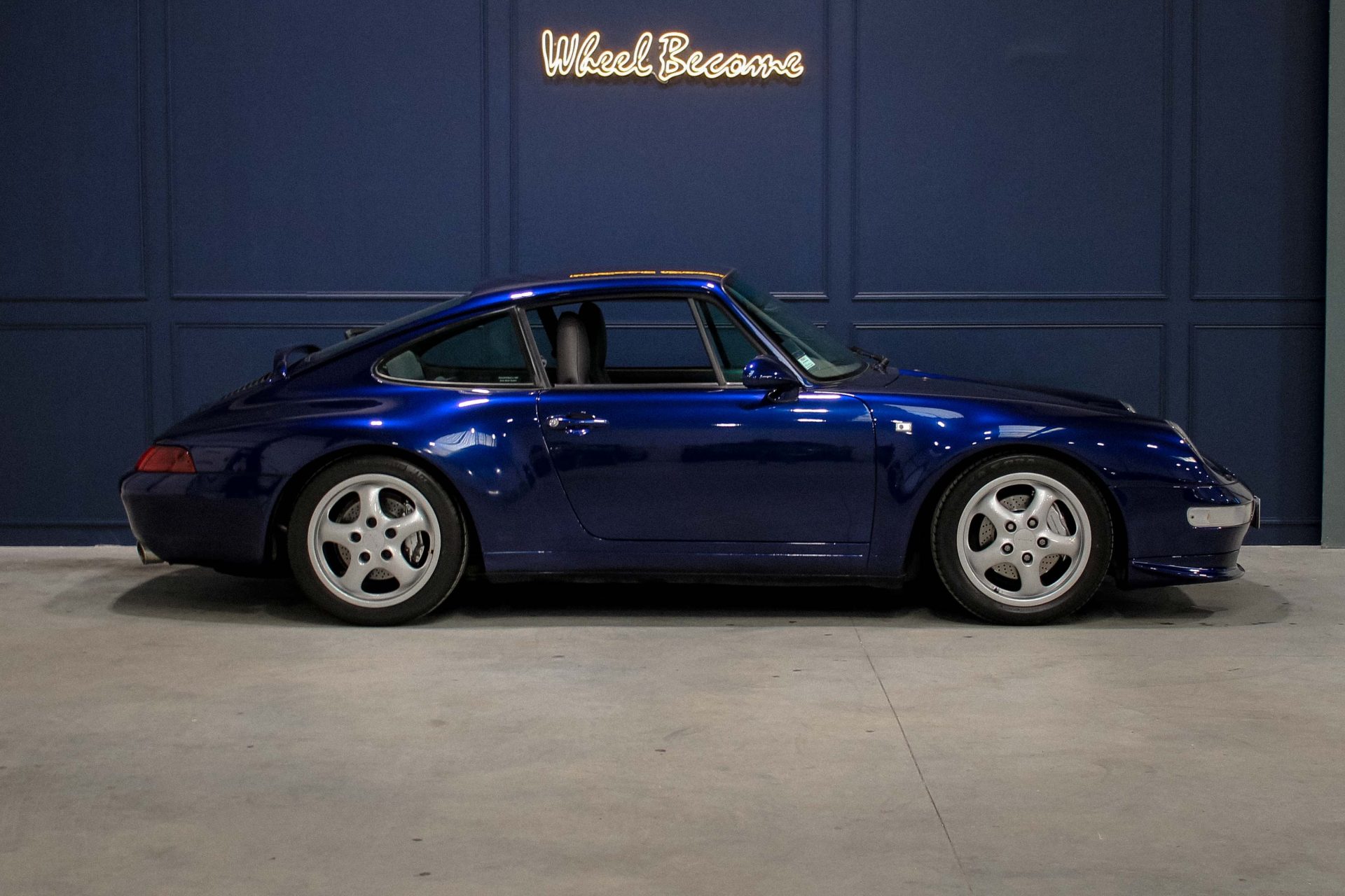 Wheel Become propose à la vente cette magnifique Porsche 911 type 993 Carrera 4 Coupe 3.6 Boite mécanique de 272cv. Véritable collector, la génération 993, dernière à refroidissement par air, est donc cruciale. Ni ancienne, ni moderne la 993 allie le meilleur des deux mondes avec un moteur mythique en porte-à-faux arrière et un look révolutionnaire plus profilé. Présentée à Francfort en 1993, la version Carrera 4 devra attendre encore 2 ans pour être commercialisée, et son système 4 roues motrices, inauguré sur la 964, connaîtra un véritable succès de par sa remarquable légèreté. A noter que cette version n’a été produite que durant une année, 1995, et à seulement 2 884 exemplaires ce qui l’a rend rare.