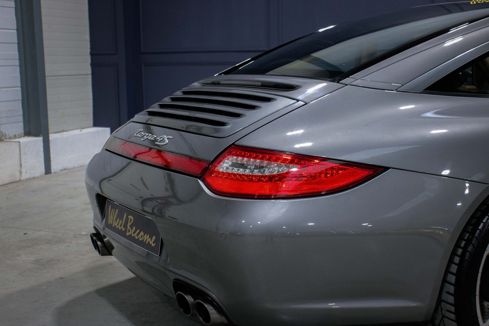 Wheel Become propose à la vente cette incroyable Porsche 911 Type 997.2 Targa 4S 3.8 de 385cv boite de vitesse PDK. Morceau incontournable de l’histoire automobile, la 911 aura traversé les décennies, imposant ses règles et ses nouveautés, tel que l’étrange positionnement du flat 6 derrière les roues arrières. La 997 ph 2 n’a pas dérogé à l’innovation, elle a inauguré l’incontournable boite double embrayage PDK et a également accueilli l’injection directe (dfi). Dans cette version 4S, elle bénéficie du 3.8 de 385cv et de la transmission intégrale particulièrement sécurisante. Enfin dans sa déclinaison Targa dotée de son grand toit vitré, elle offre un bain de luminosité à tout l’habitacle et permet sous les beaux jours d’été de pouvoir ouvrir intégralement le toit. Autre atout, la lunette arrière est ouvrante afin de faciliter le chargement du coffre arrière de cette excellente GT.