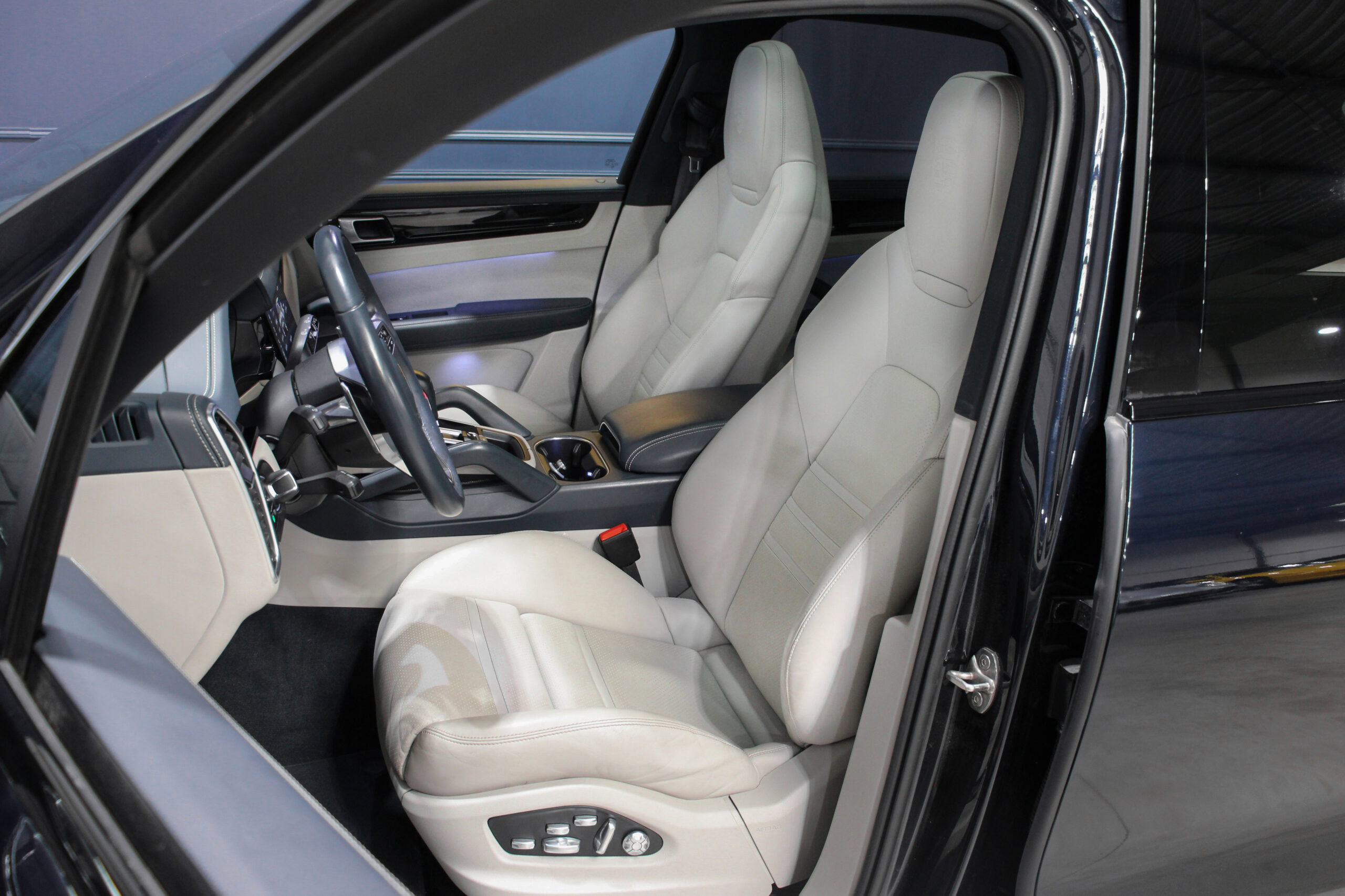 Wheel Become propose à la vente ce magnifique Porsche Cayenne E-hybrid 3,0 V6 de 462cv. Pour cette troisième génération de Cayenne, on peut dire que Porsche frappe un grand coup. L’évolution se fait à tous les niveaux, il est bien plus confortable, bien mieux équipé et surtout bien plus polyvalent. Il bénéficie d’instruments issus de la 918 Spyder et d’options tel que le PDCC qui lui permet d’être soit sportive et dynamique, soit confortable et souple. De plus, c’est la première génération d’Hybrides rechargeables avec une vraie autonomie de roulage en full électrique de près de 50km.